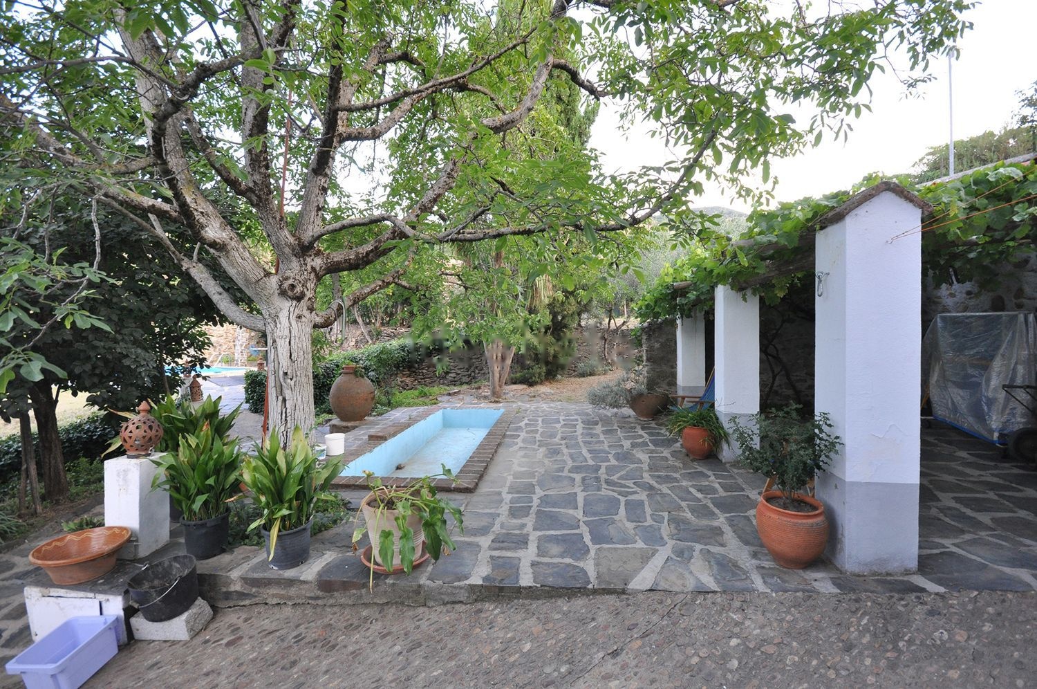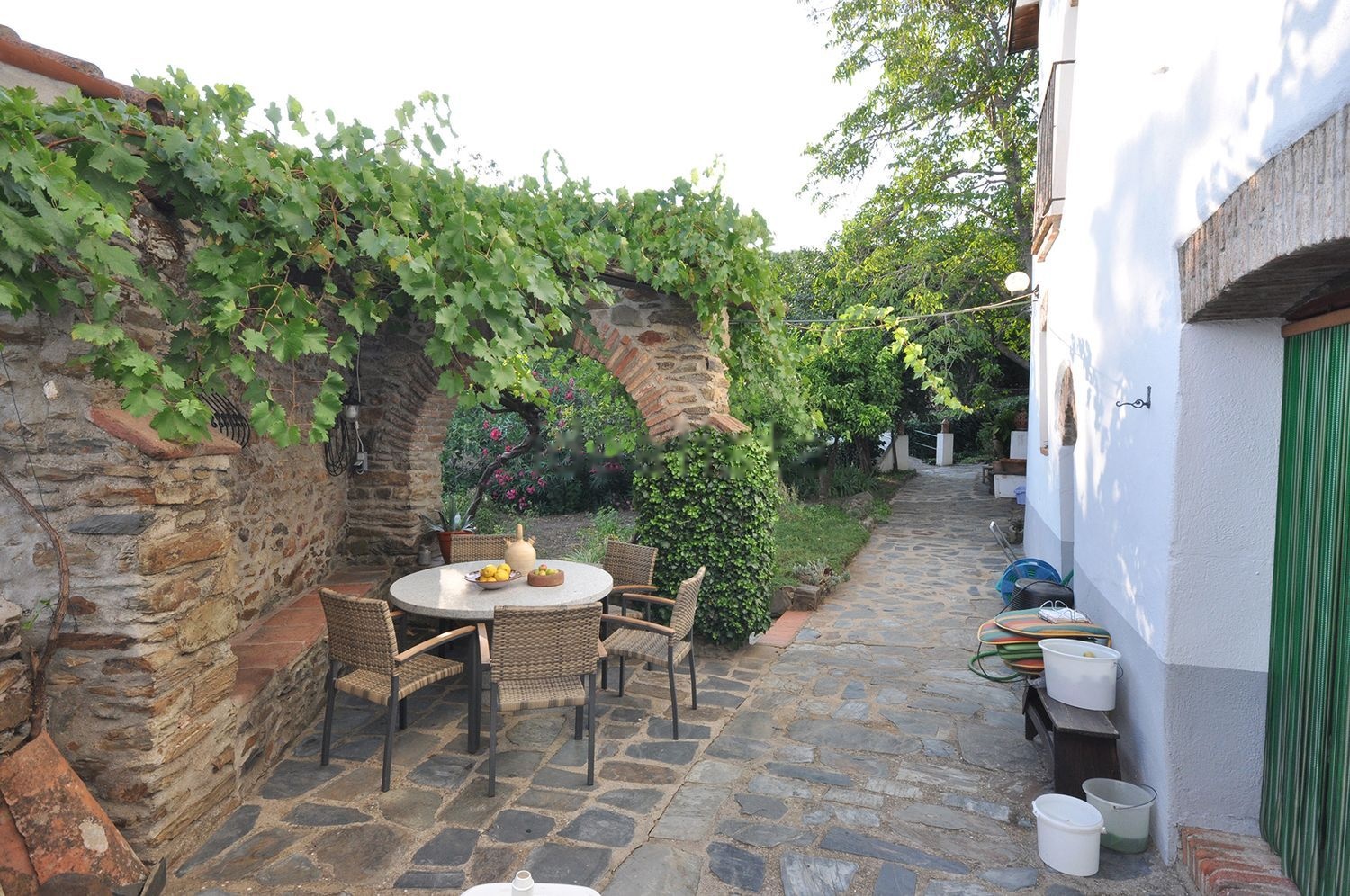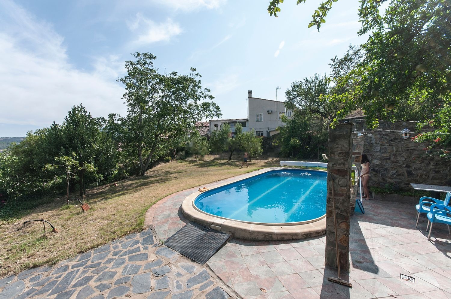 El jardín, totalmente cuidado, está ordenado en distintas terrazas que alojan una gran diversidad de rincones pintorescos y acogedores. En una de las terrazas se ubica la piscina con ducha exterior, junto a una caseta de piedra que contiene el vestuario y las instalaciones. En otra terraza se encuentra un establo de 48 m2 rodeado de árboles y plantas.