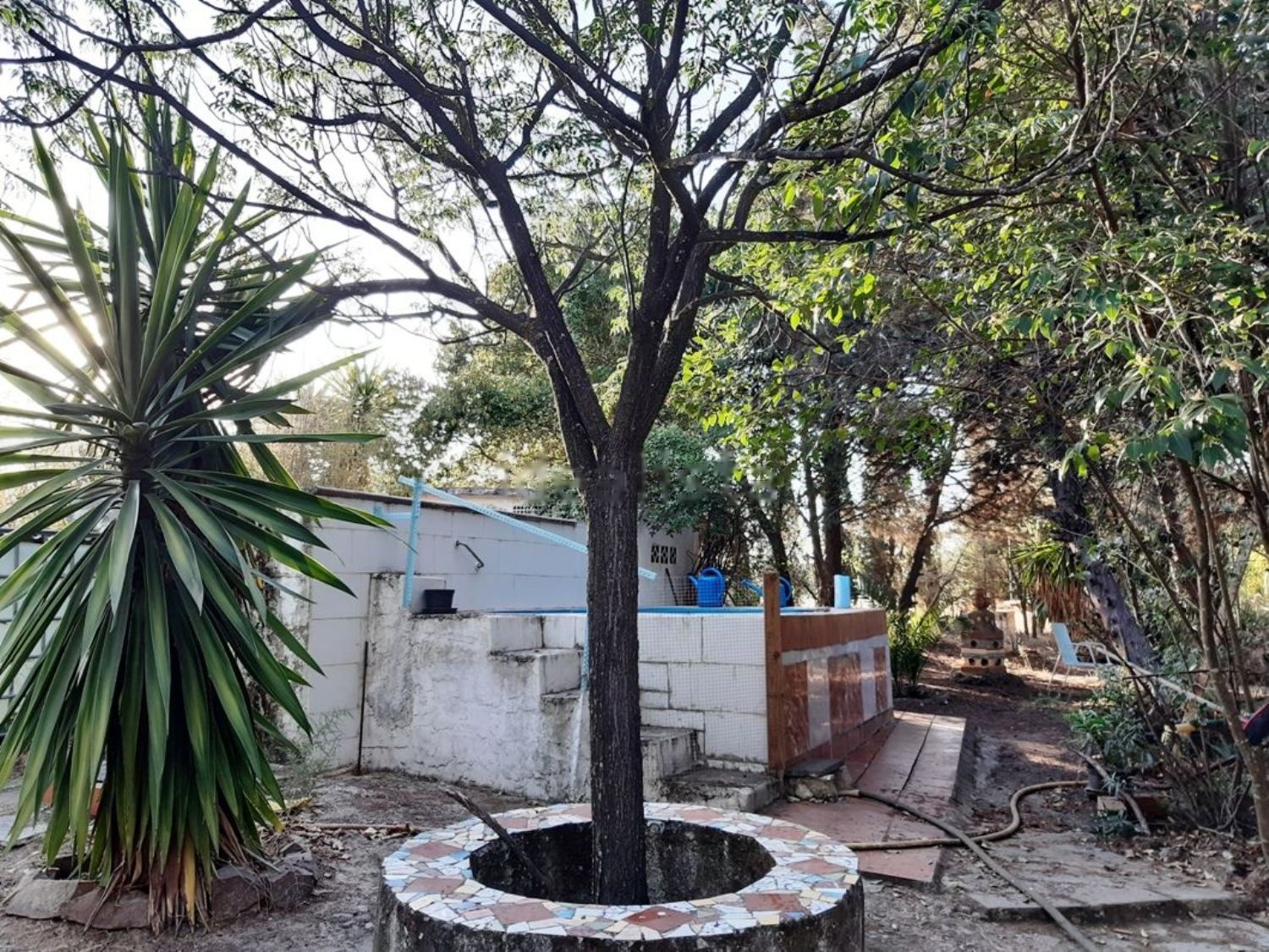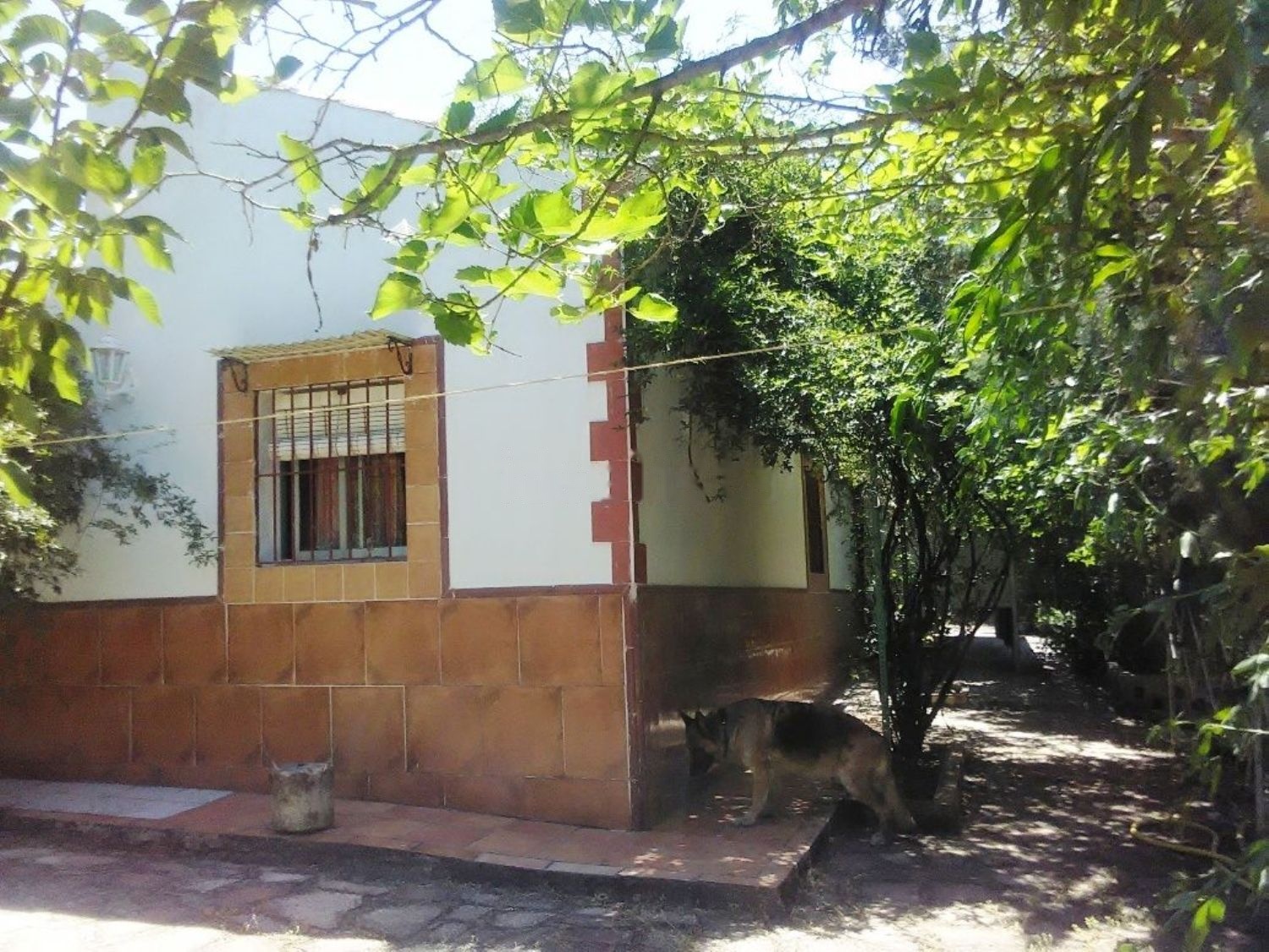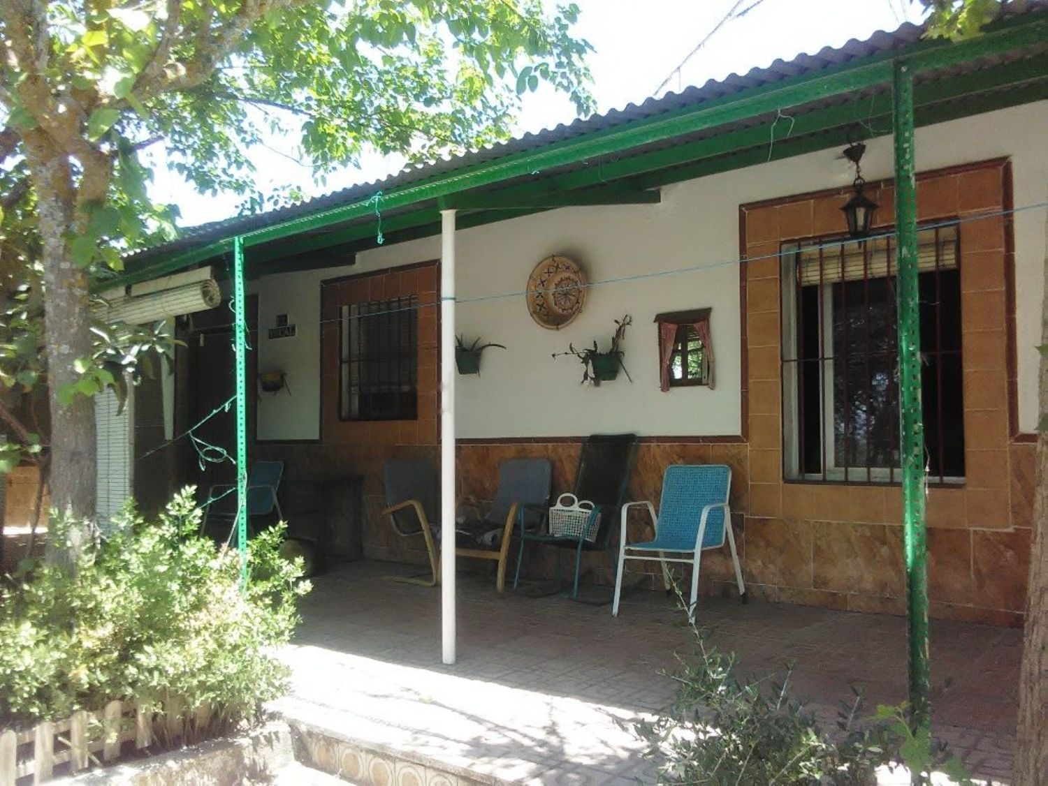 Casa rural con terreno. La casa tipo chalet está rodeada de árboles de sombra. La finca tiene 300 metros de largo por 38 m. de ancho, vallada, (la casa en el centro) con árboles frutales, almendros, olivos jóvenes y una higuera. La casa tiene 175 m2, está amueblada y con electrodomésticos. Tres habitaciones, sala estar-comedor con chimenea, TV; 2 aire acondicionados: uno en comedor y otro en dormitorio principal. Cocina, WC-baño agua caliente, trastero, patio interior, terraza, cochera y pequeña piscina.