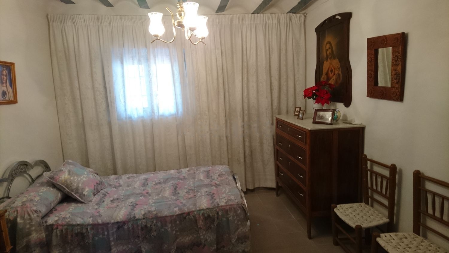 La planta baja consta de salón, sala de estar, cocina, tres dormitorios, cuarto de baño completo, lavadero con trastero y salida a patio. La planta primera consta de tres dormitorios grandes, cuarto de baño completo y dos trasteros. La segunda planta dispone de dos buhardillas. Y una gran bodega.