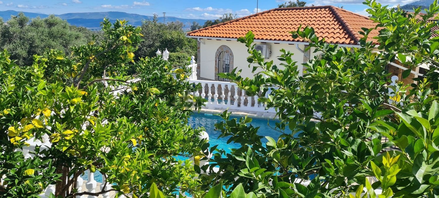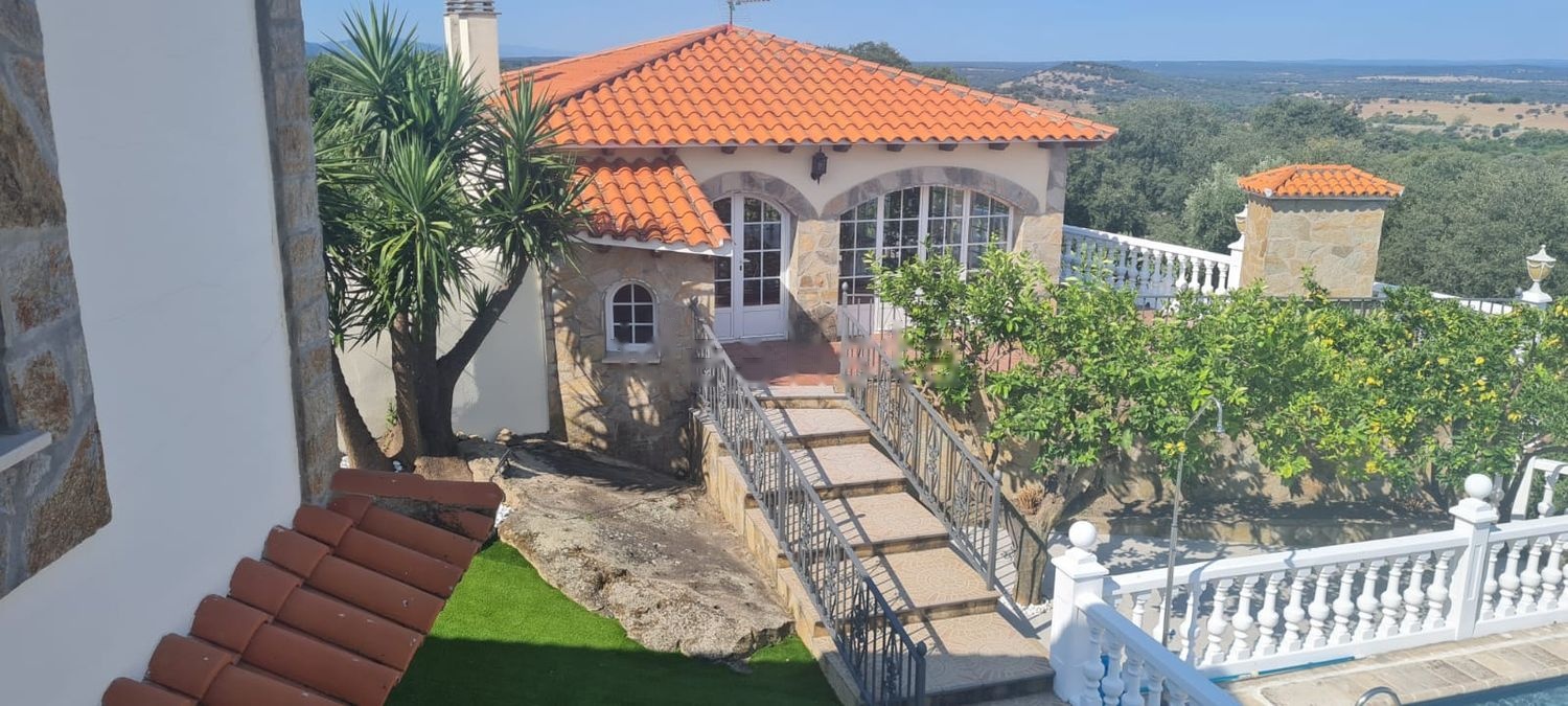 Casa de Campo con las mejores comodidades, casa de capricho 4 habitaciones y 2 baños salon y conina mas trastero, con las mejores vistas de mas de 100 km sierra gata, hurdes, detras sierra al jerte, con terraza mirador de 100 m2 salon de mas de 80 m2, con bar, gimansio, sauna, ducha chorros, zona de ocio, casa guardeses concina baño, salon y dormitorio matrimonio, piscina, etc un capricho unico, que da intimidad, descanso.