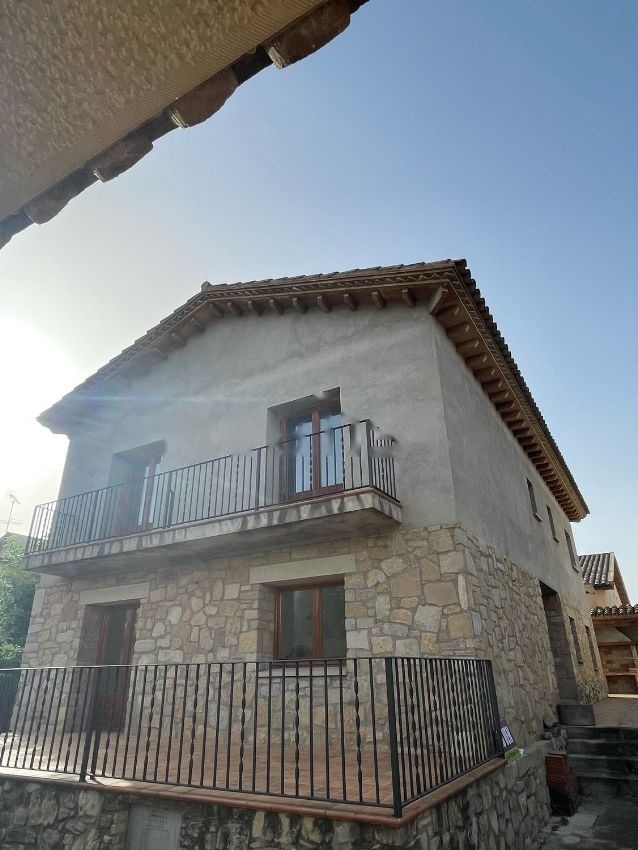 Se vende casa en la mejor zona del pueblo primera línea carretera de Poblet parquíng 5 coches, planta baja terminada, por terminar baños, cocina, electricidad y Fontaneria; inversión aproximada de 80/100 mil € increíble Construccion con piedra y detalles en los voladizos del tejado, enyesada, madera de teka en puertas y ventanas exteriores, dispone de barbacoa y amplia terraza.
