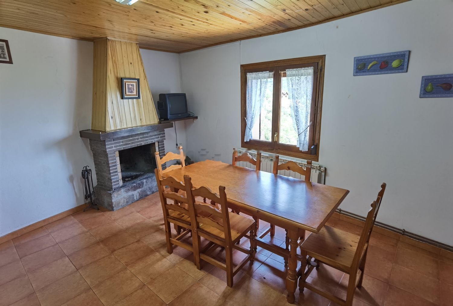Casa de pueblo situada en un emplazamiento muy tranquilo, con buena orientación y muy buenas vistas. La vivienda principal se compone de dos plantas con un total de 100 m2 útiles, en cinco habitaciones, dos baños, cocina y comedor. Tiene chimenea y calefacción. También hay un apartamento anexo de unos 60 metros2 útiles, compuesto de cocina-comedor, tres habitaciones, un baño y despensa.