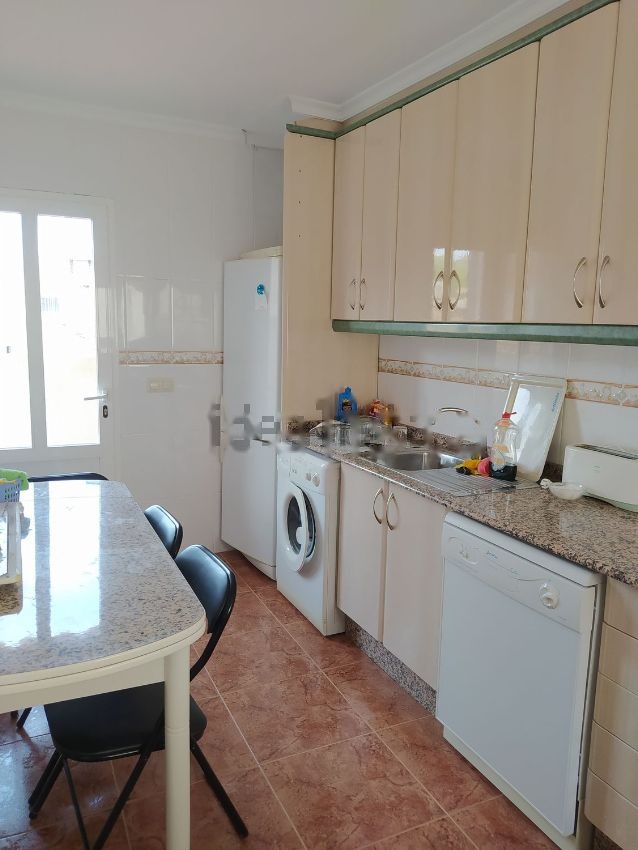 La vivienda contiene un salon comedor, un baño, una cocina, tres habitaciones, una terraza y un patio exterior.