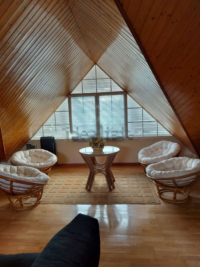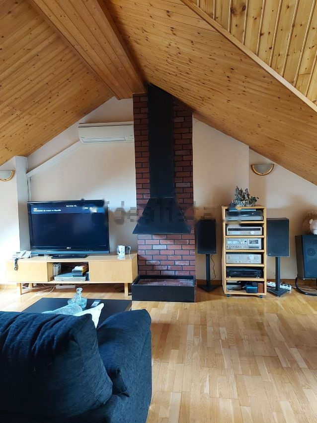 Buhardilla: Techos totalmente forrados en madera de Roble. Totalmente diáfana con un gran ventanal y dos ventanas Velux con persianas eléctricas. También dispone de acometidas preparadas para hacer un aseo. Y Aire Acondicionado con Bomba de Calor.