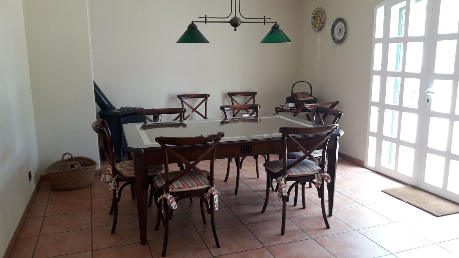 Chimenea de leña en salón y cocina.