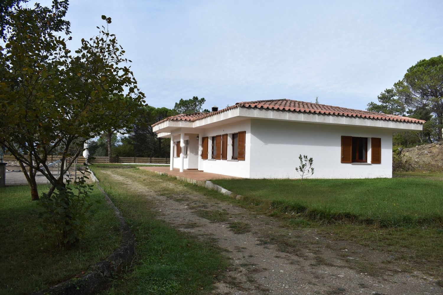 La vivienda está rodeada por una zona de paso privada para vehículos. Junto a ella está situada la piscina con terraza incluida.