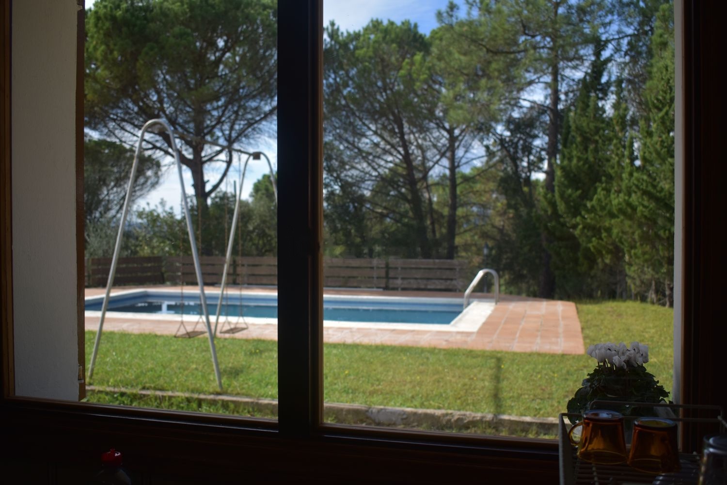 En una zona inferior al nivel de la piscina está la sala de máquinas de la misma así como una zona cubierta bajo la terraza.