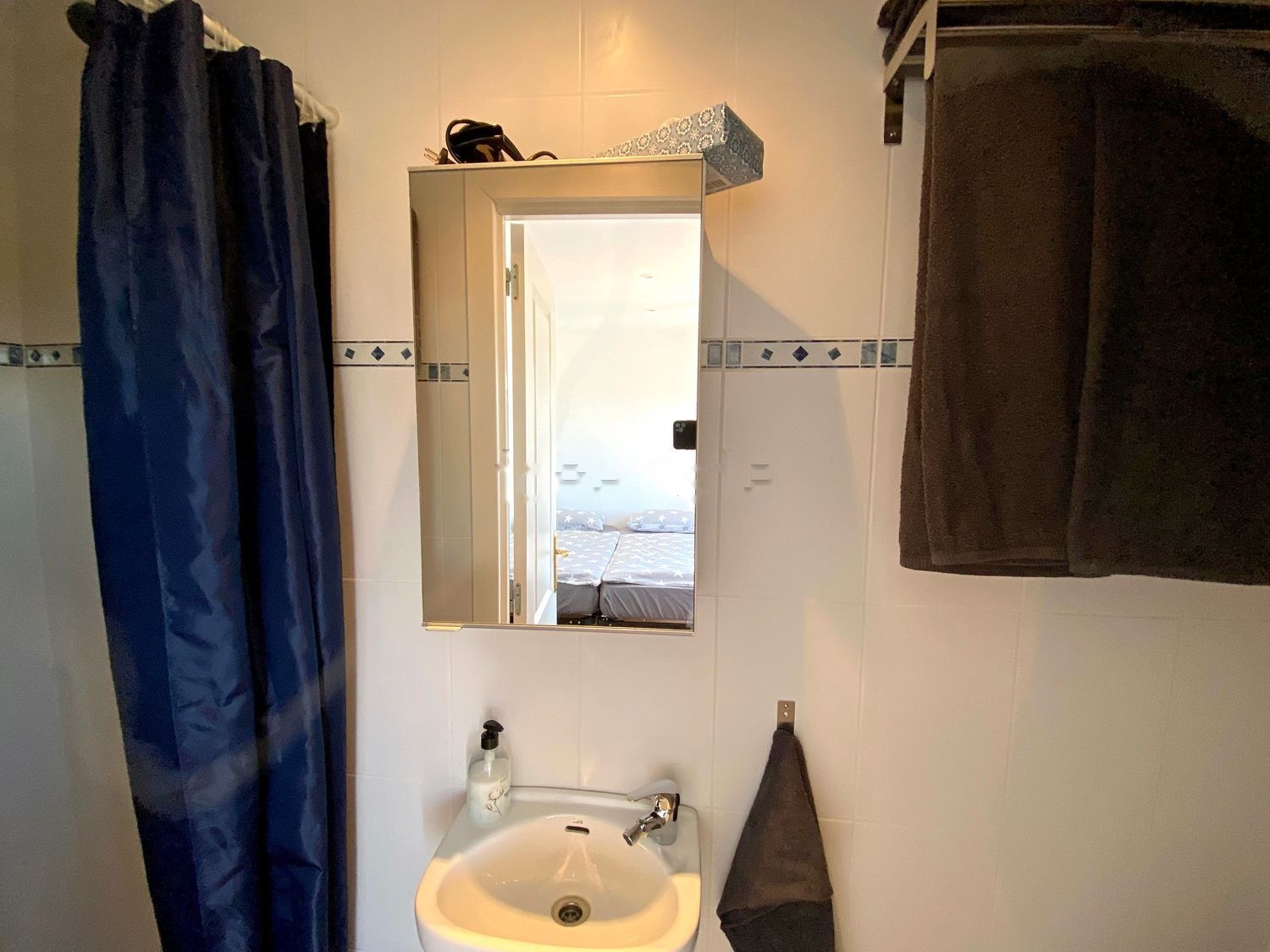 En la torre hay una pequeña habitación de invitados, acceso exterior, con cuarto de ducha/aseo.
