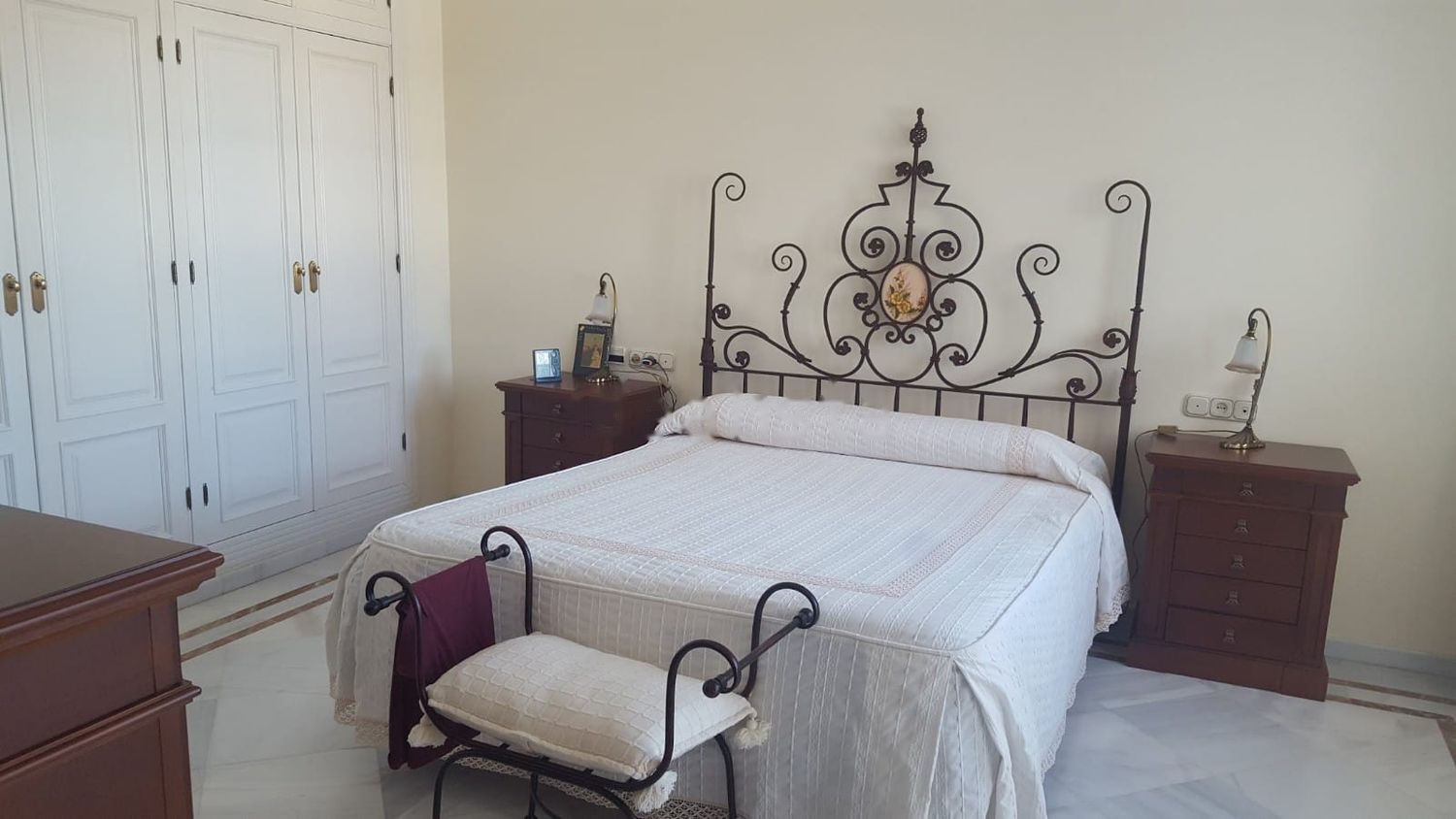 En la planta de arriba nos encontramos con 4 dormitorios, todos con armarios empotrados y gran iluminación, el suelo es de mármol, el cuarto principal tiene baño en suite, zona de vestidor y gran terraza con vistas. La calefacción va con radiadores de gasoil, además dispone de aire acondicionado centralizado en ambas plantas.