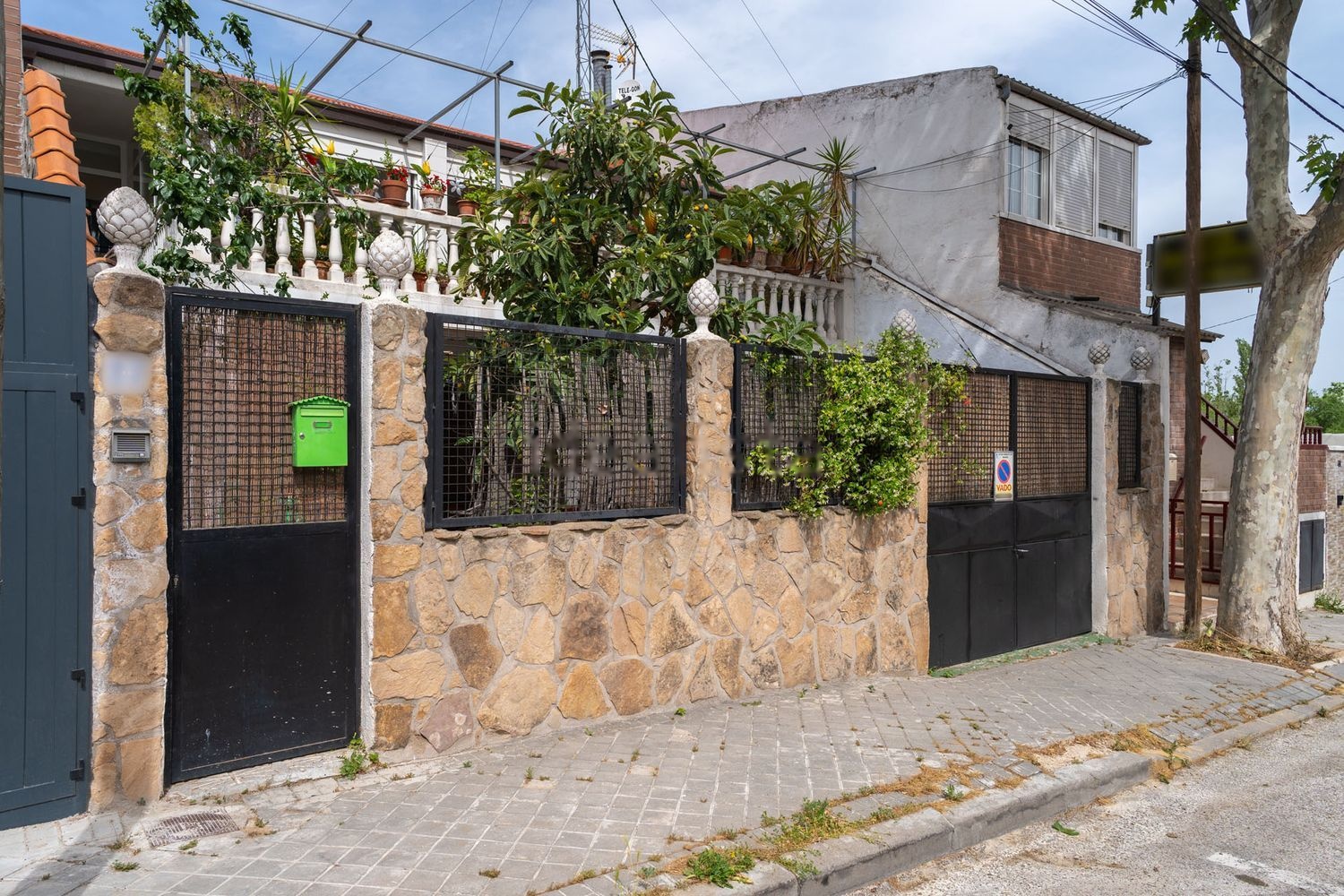 Planta baja: Fachada con entrada peatonal y entrada para vehículos (con vado vigente y pagos al día). La planta baja se divide en acceso a la casa mediante escaleras, patio de suelo cerámico y dos pequeños trasteros bajo la escalera. Al otro lado queda el paso de carruajes con suelo de cemento y paso a cochera de 110m y baño completo.