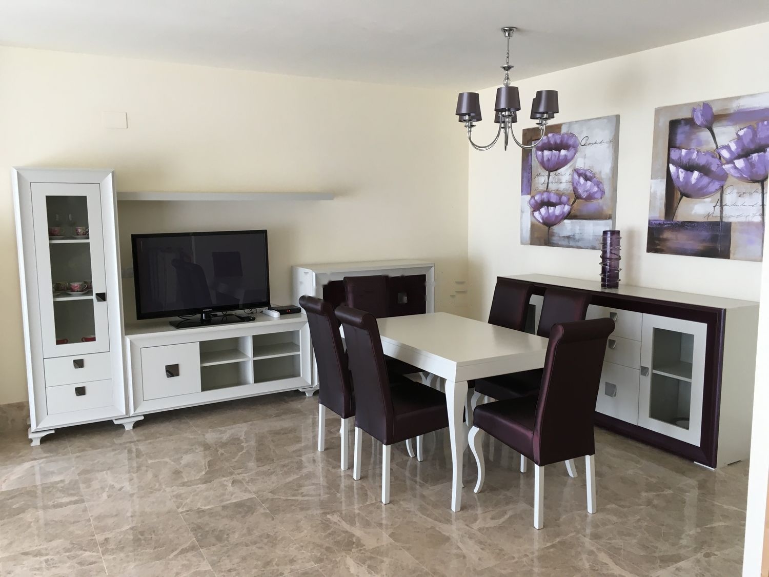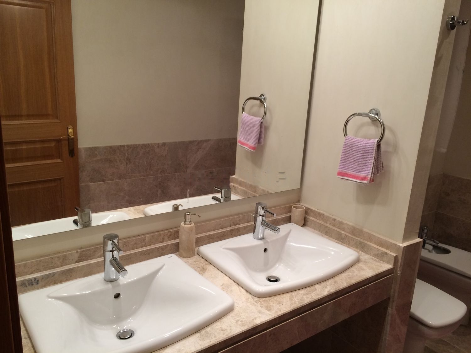 An immaculate three-story townhouse with 2 bedrooms, 2 full baths and a small guest toilet. The house has a spacious living room, good sized bedrooms with large built-in wardrobes, walk-in closets, storage room and terraces with a total area of 165 sq. m. own plot of 50 sq. m. Ideal family home. Some other features: air conditioning (hot/cold), fireplace, well equipped kitchen with good technical specifications, dressing rooms and two parking spaces one of which is covered. 24-hour security video surveillance. The apartments are fully furnished with stylish furniture and equipped with high-quality siemens appliances (refrigerator, oven, sensor electric, stove, microwave, dishwasher, washing machine, dryer), as well as everything you need for everyday life: vacuum cleaner, hairdryer, iron, bedding sets, towels, TV.