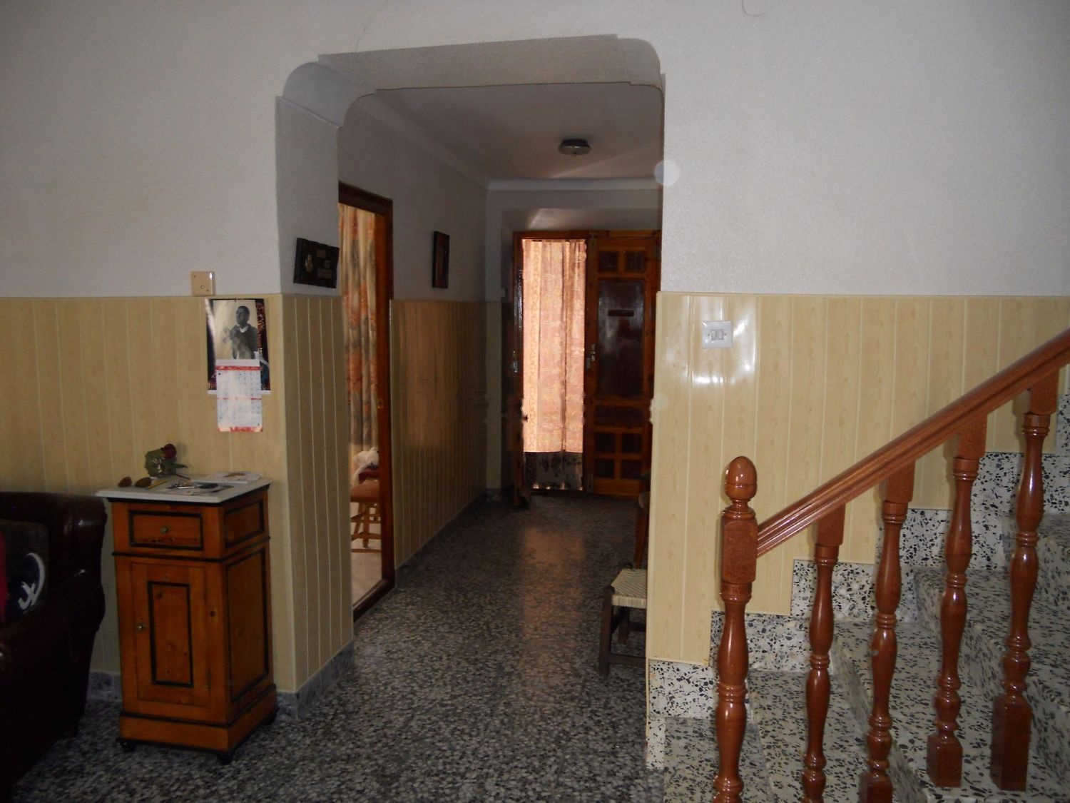 Es una casa en el centro del pueblo, a 70 m de la plaza del Ayuntamiento, plaza Grande y a 100 de la Iglesia de Santiago Apostol. Con dos plantas tiene una 6º habitacion en la planta de arriba de unos 20 m2 en bruto, sin solar ni enlucir actualmente se usa como trastero. El garaje es el patio cubierto parcialmente.