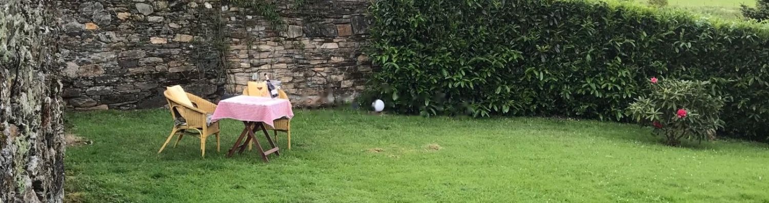 La finca de la casa está plantada de castaños, robles, álamos, nogales, pequeños naranjos y limoneros.. . Posee también un pequeño arroyo que cruza la parte baja de la parcela. Impresionantes vistas al pequeño valle de Sta. Cruz y sus montañas. Todo ello en una gran parcela de 8.000 m2.