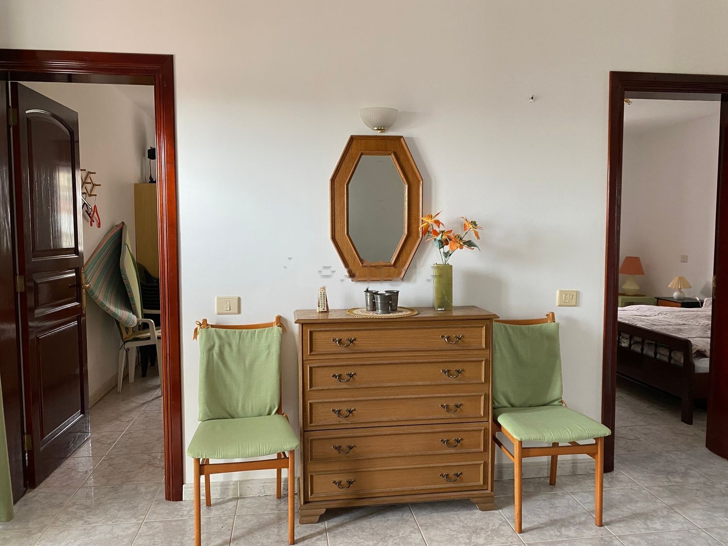 Puertas de madera maciza, todas las habitaciones con mosquiteros.