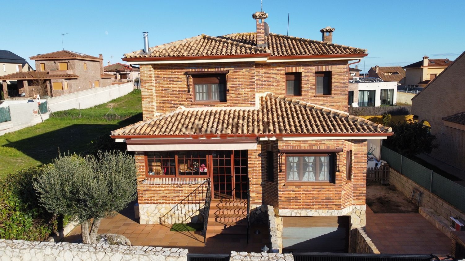 Zonas amplias en el exterior con gran parte solada con gres breda. Piscina de obra construida hace 3 años con clorador salino y climatizada con placas solares.