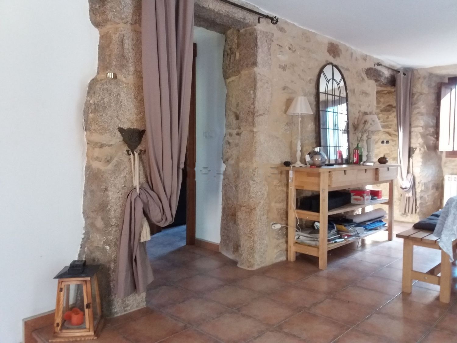 Preciosa casa de piedra, semi-restaurada, terreno llano de casi 5000m², gran palleira (pajar) de piedra, y hórreo sin restaurar. Ideal para residencia, casa de vacaciones, o para proyecto de 'co-housing'. El pajar se podría convertir en propiedad de alquiler, o espacio de ocio. Tejado nuevo. Planta baja totalmente reformada hace unos 5 años. Consta de: salón-comedor de unos 50m² con estufa de leña; habitación doble con baño completo ensuite; aseo de cortesía; cocina equipada; gran horno de piedra con chimenea en la cocina; porche cerrado acristalado; terraza. Carpintería interior de castaño; puertas principales (2 entradas) y ventanas de iroko. Calefacción de gasoil. En el porche hay una cuarto donde se ubican la lavadora, calentador, depósito de gasoil, etc. Wifi. La primera planta está sin restaurar, prácticamente diáfana. Se pueden hacer 4 dormitorios, o dos grandes estudios independientes; tiene múltiples posibilidades y acceso a una terraza superior que recorre toda la fachada norte (el tejado del porche: el suelo es nuevo, pero está sin barandilla). Entorno: zona muy tranquila, pero no aislada, de fácil acceso y bien comunicado. La casa se encuentra a unos 400m de una aldea pequeña, y a unos 15km de Pontedeume y la costa. Irixoa a 8km. Cerca del parque natural de las Fragas de Eume y del monasterio de Monfero; a unos 45km de La Coruña. El aeropuerto de Santiago está a poco más de una hora.