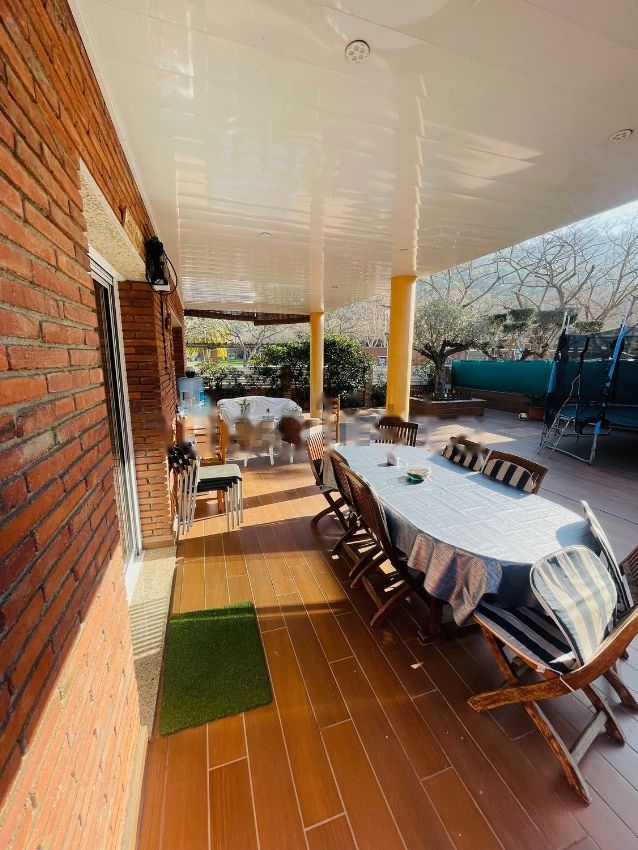 Espectacular chalet de ladrillo visto a cuatro vientos en la zona de Santa María de Montcada. Propiedad de 550m2 construidos en 3 plantas en una parcela de 460m2 rodeada de un espectacular zona ajardinada con una fantástica piscina, zona de barbacoa y horno de leña.