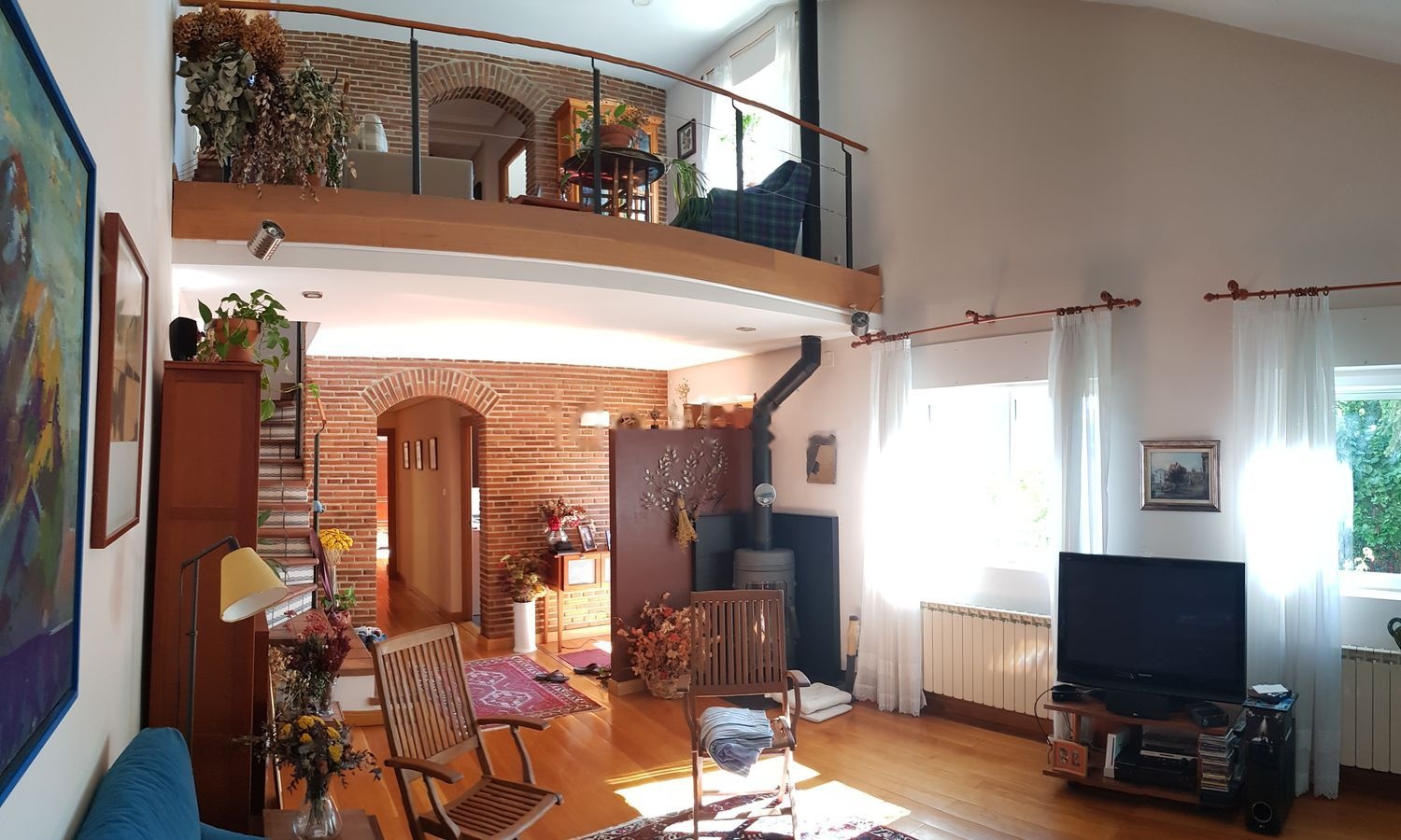 Chalet individual, buena situación y buen diseño con espacios a doble altura. Calidades excelentes. Con suelo de tarima de roble macizo. Planta baja con gran salón, cocina, habitación de matrimonio y baño. Primera con dos amplias habitaciones, baño con jacuzzi salón y terraza. Bajo cubierta con terraza de magníficas vistas. Jardín cuidado con zona estancial accesible desde cocina. Calefacción de radiadores conectada a caldera de pellets, de gas y gasoil. Buen aislamiento con ventanas de pvc con triple vidrio. Garaje y trastero, este accesible desde la propia vivienda. Perfecto estado.