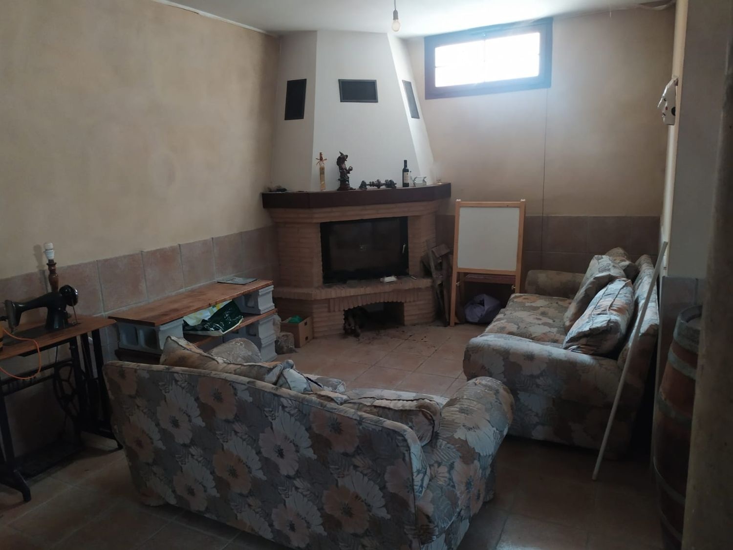 Semi sótano: bodega con cocina y chimenea, trastero y aseo.