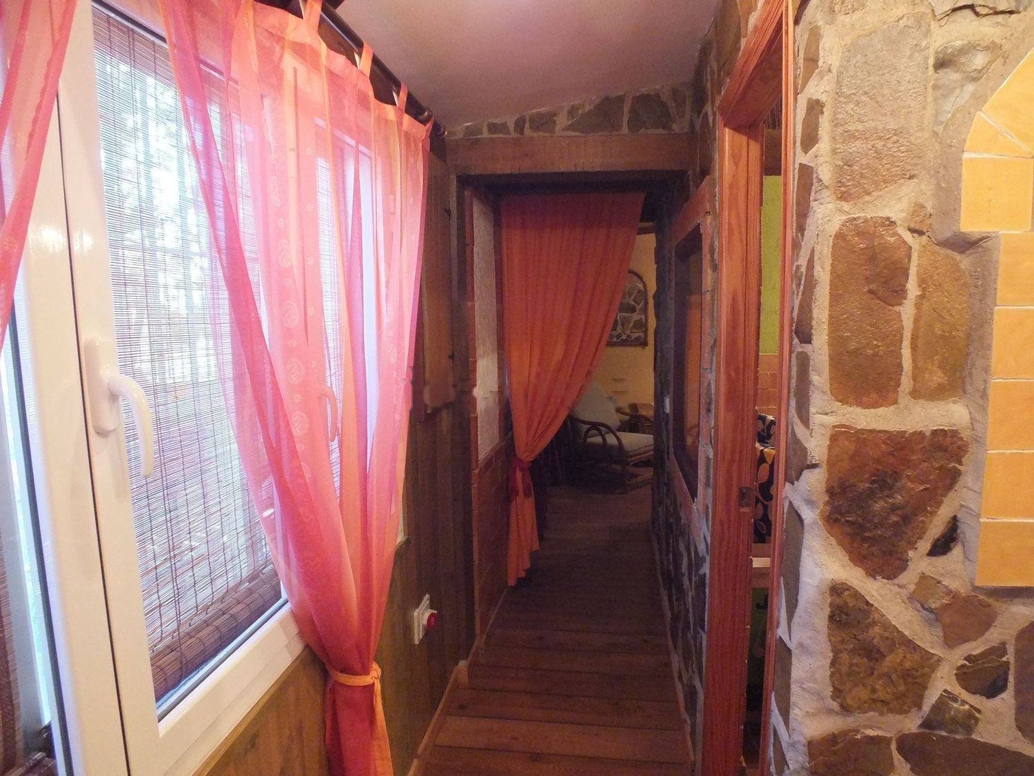 El acceso al patio y a la segunda vivienda puede hacerse de forma independiente a traves de las portadas de madera que dan acceso al pasillo lateral ajardinado de la parcela.