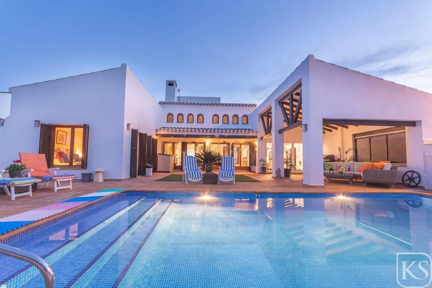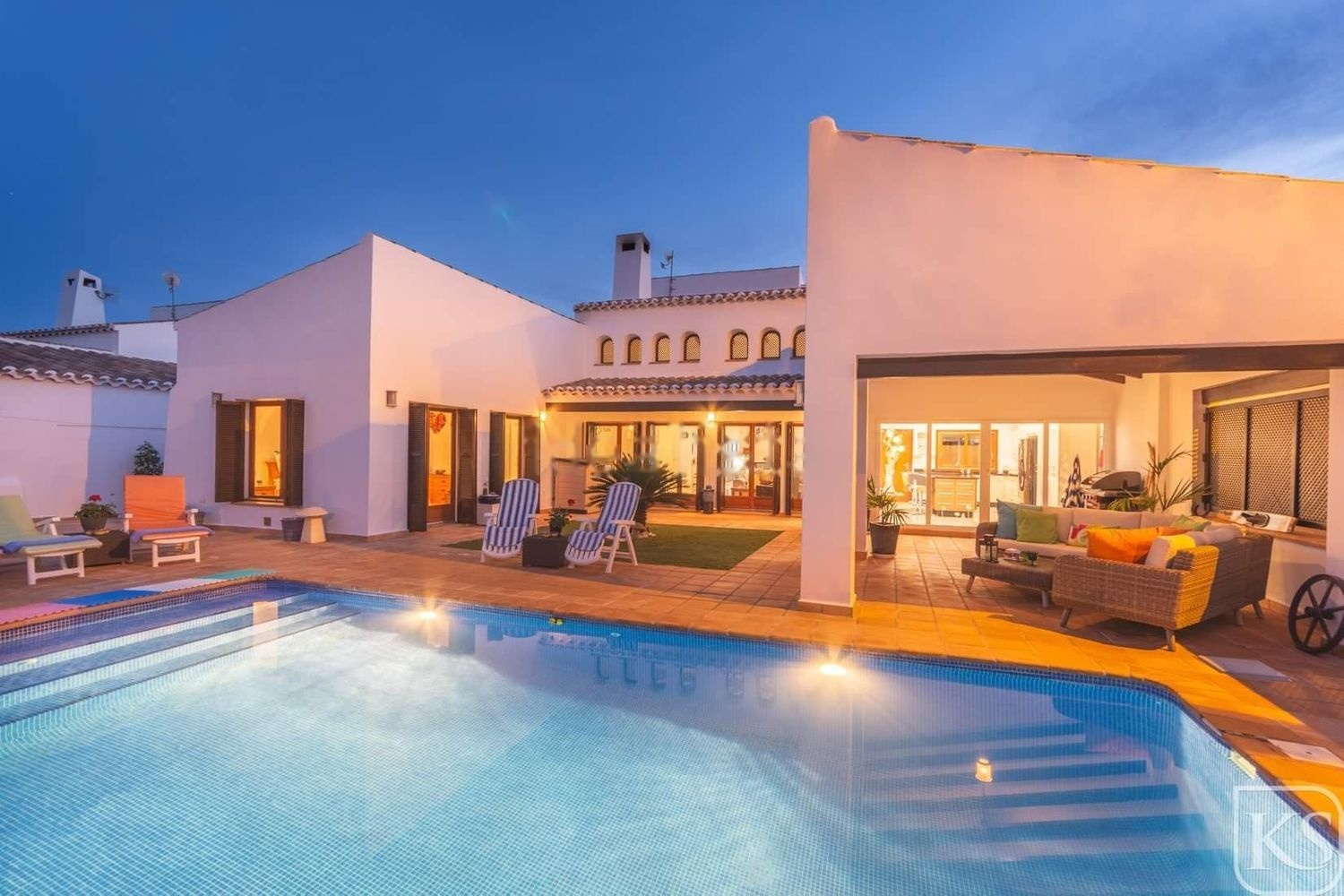 Ubicada en una planta con cuatro dormitorios, tres baños y dos cocinas, la propiedad disfruta de excelentes vistas y total privacidad.