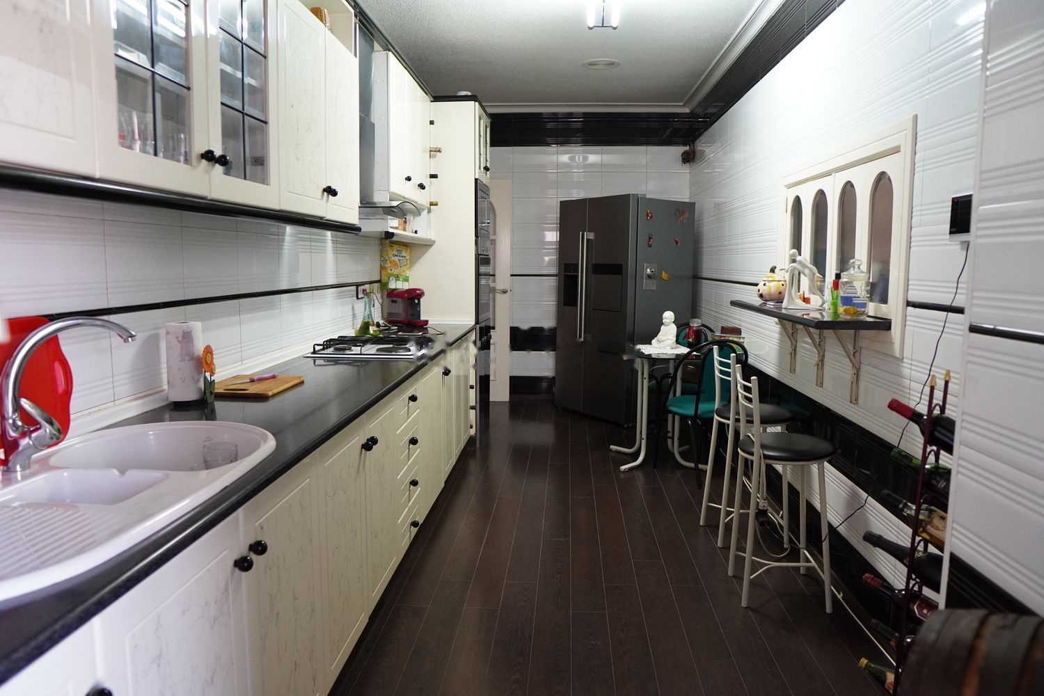 1. En la planta baja, encontramos parcela de 1.100 metros con amplia entrada, mini huerto para árboles frutales, garaje con 4 metros de altura (apto para descarga de camiones) y cabida para 7 coches. Piscina de sal con Jacuzzi y cascada, preinstalación de calefacción, clorador salino y regulador automático de PH. Pérgola con recubrimiento anti calórico, barbacoa, baño completo y mini sala de estar. Casa de obra para perros. Preinstalación de hueco de ascensor.