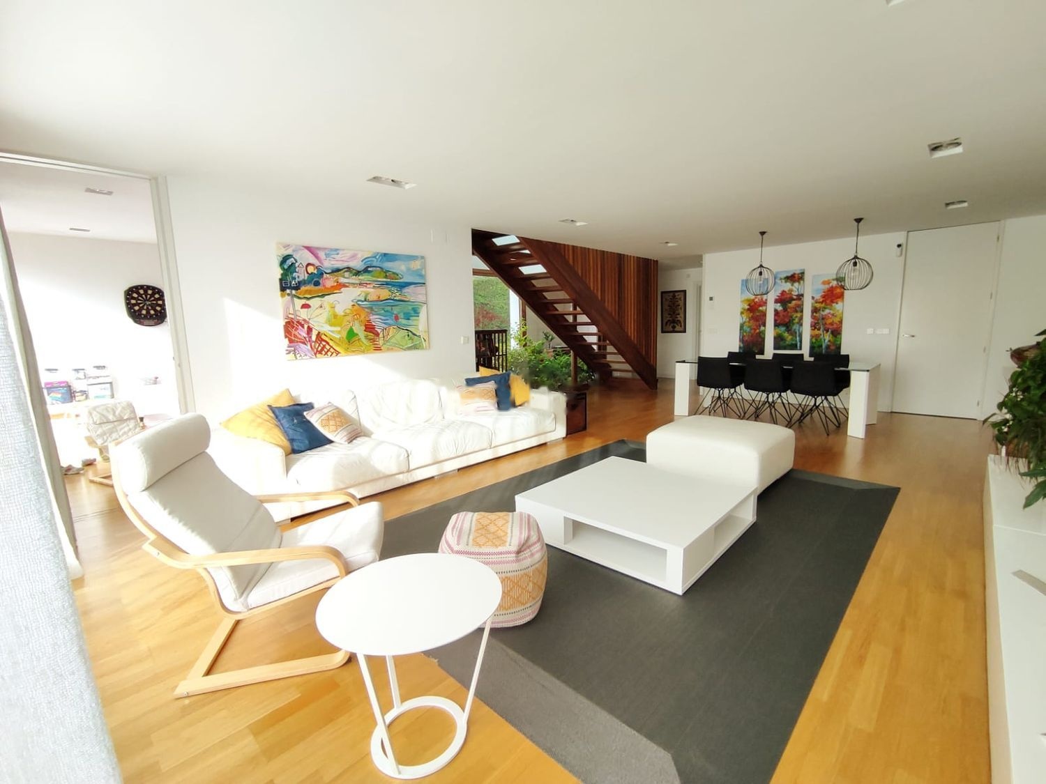 - 3 baños (1 baño completo independiente, 1 baño completo en suite, 1 aseo en la planta baja).