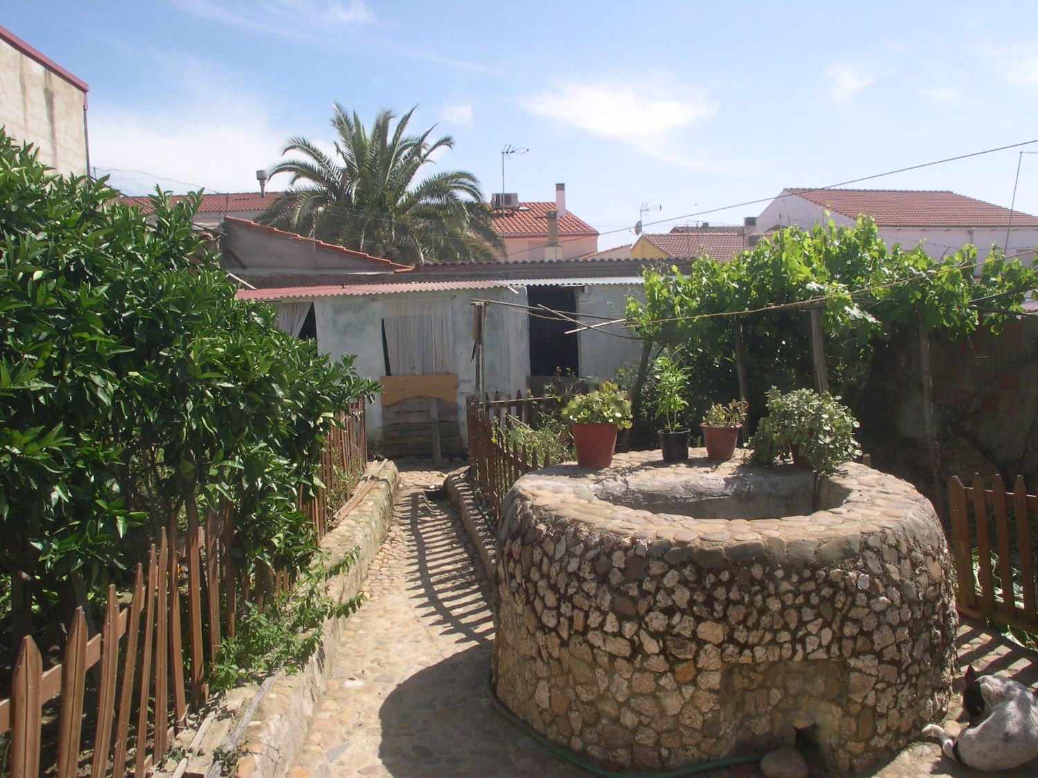 Se vende casa de 250m; en planta baja y 1ª planta diáfana, abuhardillada. 4 habitaciones, salón, amplia cocina totalmente equipada, lavadero, baño completo muy amplio. Techos altos abovedados. Patio trasero con jardín, con naranjos y pozo de piedra. 3 pequeñas naves (trastero, leñero y gallinero). Terraza cubierta, con pequeña cocina independiente. Zona tranquila cerca del pantano (premiado con la bandera azul de la CEE). A pocos KM de Don Benito y Villanueva de la Serena