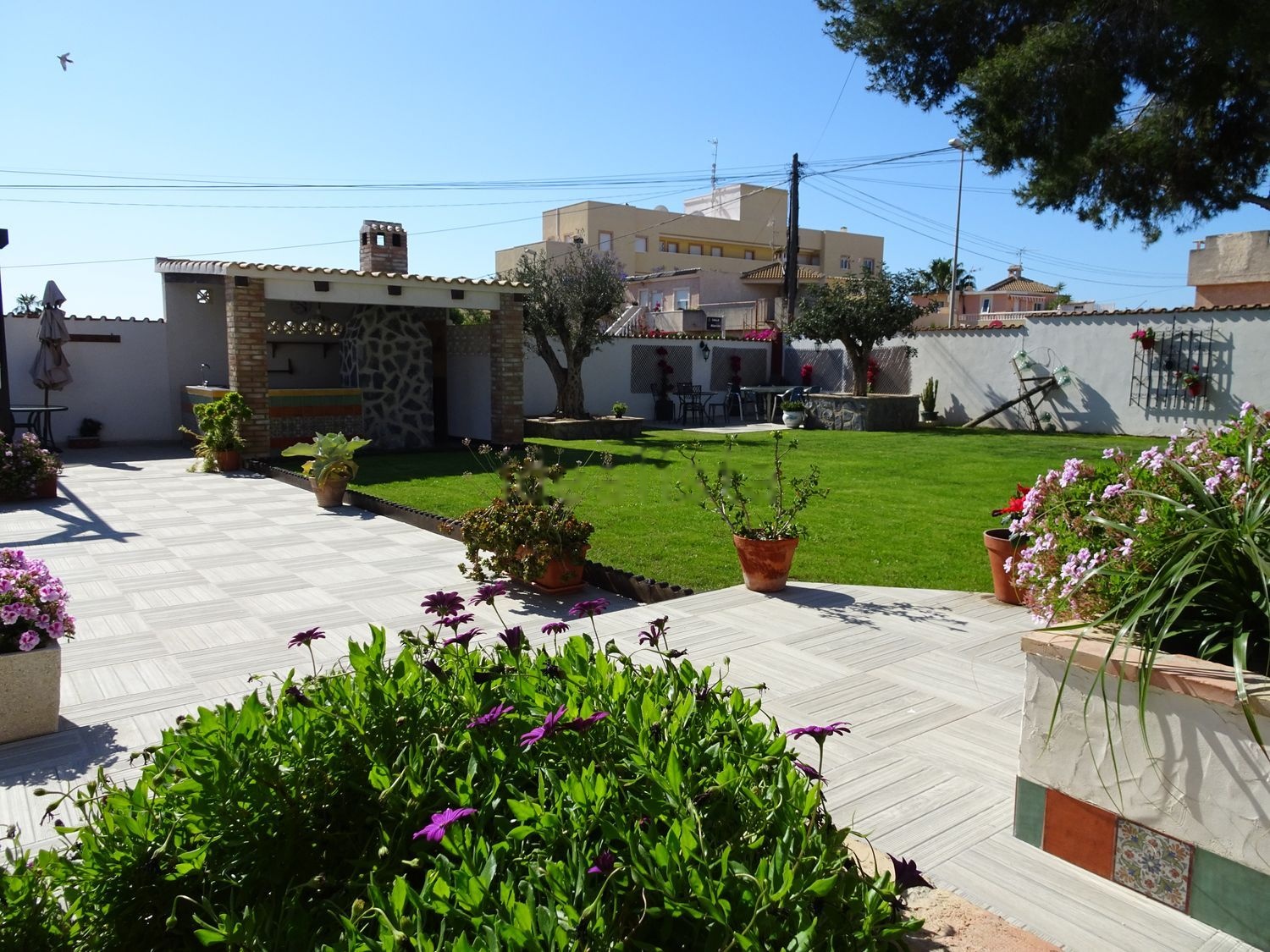 La parcela es totalmente llana y muy grande de algo más de 1000m2, con una barbacoa y cocina de gas de butano grande en el exterior. Piscina climatizada de 9x4 con máquina Astralpool donde tendrás toda la privacidad que necesites y en un barrio muy tranquilo. Tiene infinitas posibilidades de reforma interior.