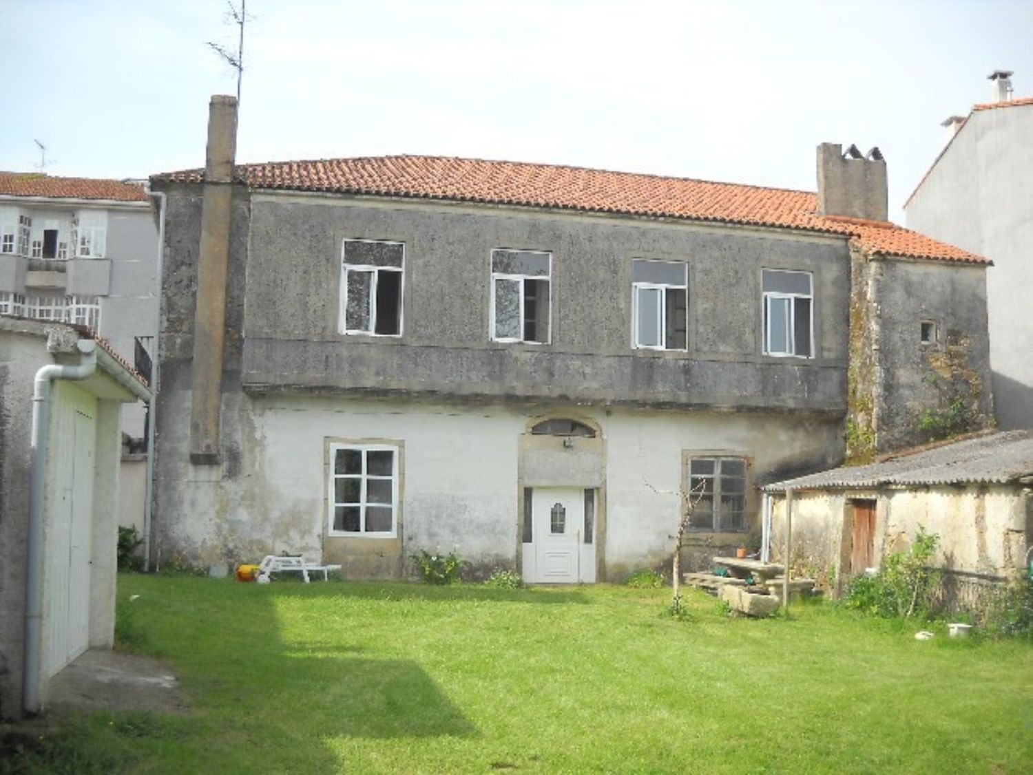 Casa de piedra incluída en el catálogo municipal, del año 1886, en el centro del núcleo del ayuntamiento de Serra de Outes.