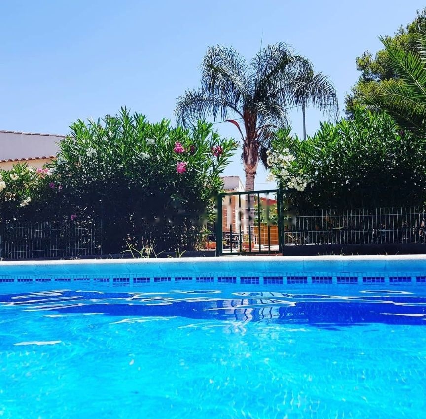 En el exterior hay un garaje, una barbacoa, un baño para dar servicio al exterior, un trastero donde se guardan las herramientas del jardín, la caseta de la depuradora y una espectacular piscina con luz de 12x6 metros con depuradora. La zona del exterior tiene hormigon impreso y la piscina esta rodeada de cesped natural. La vivienda también dispone de wifi.