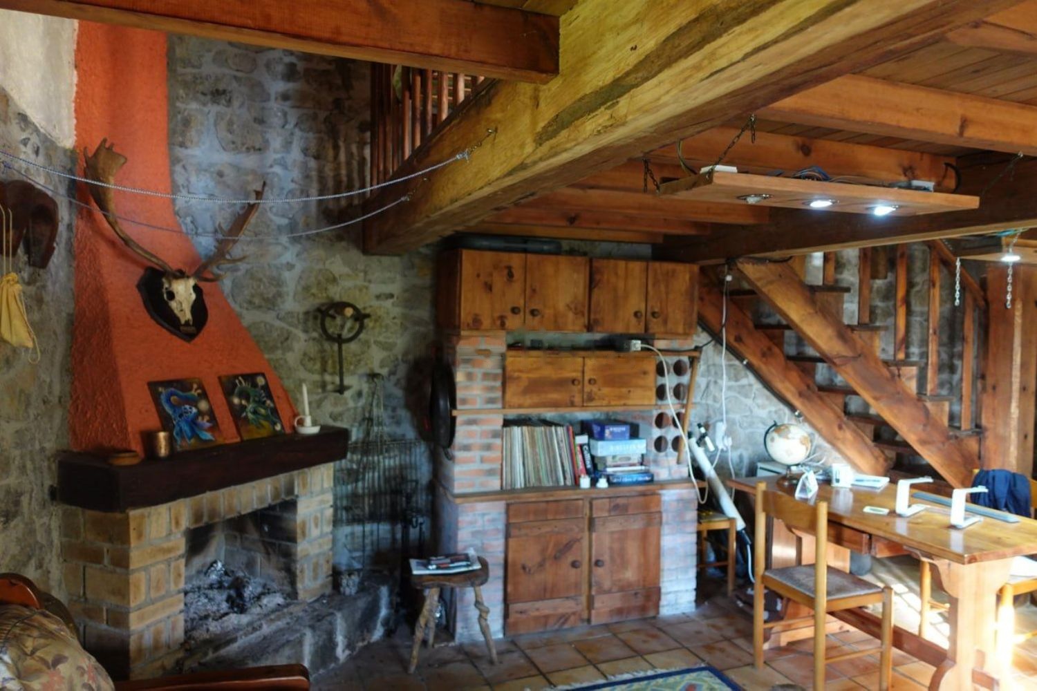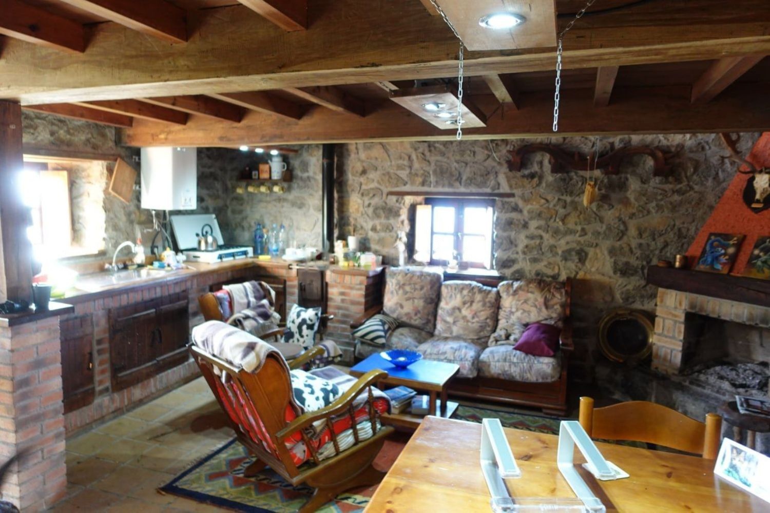 • Características: Salón-cocina abierto con chimenea, aseo/ducha, dormitorio abierto arriba, parcialmente amueblado.