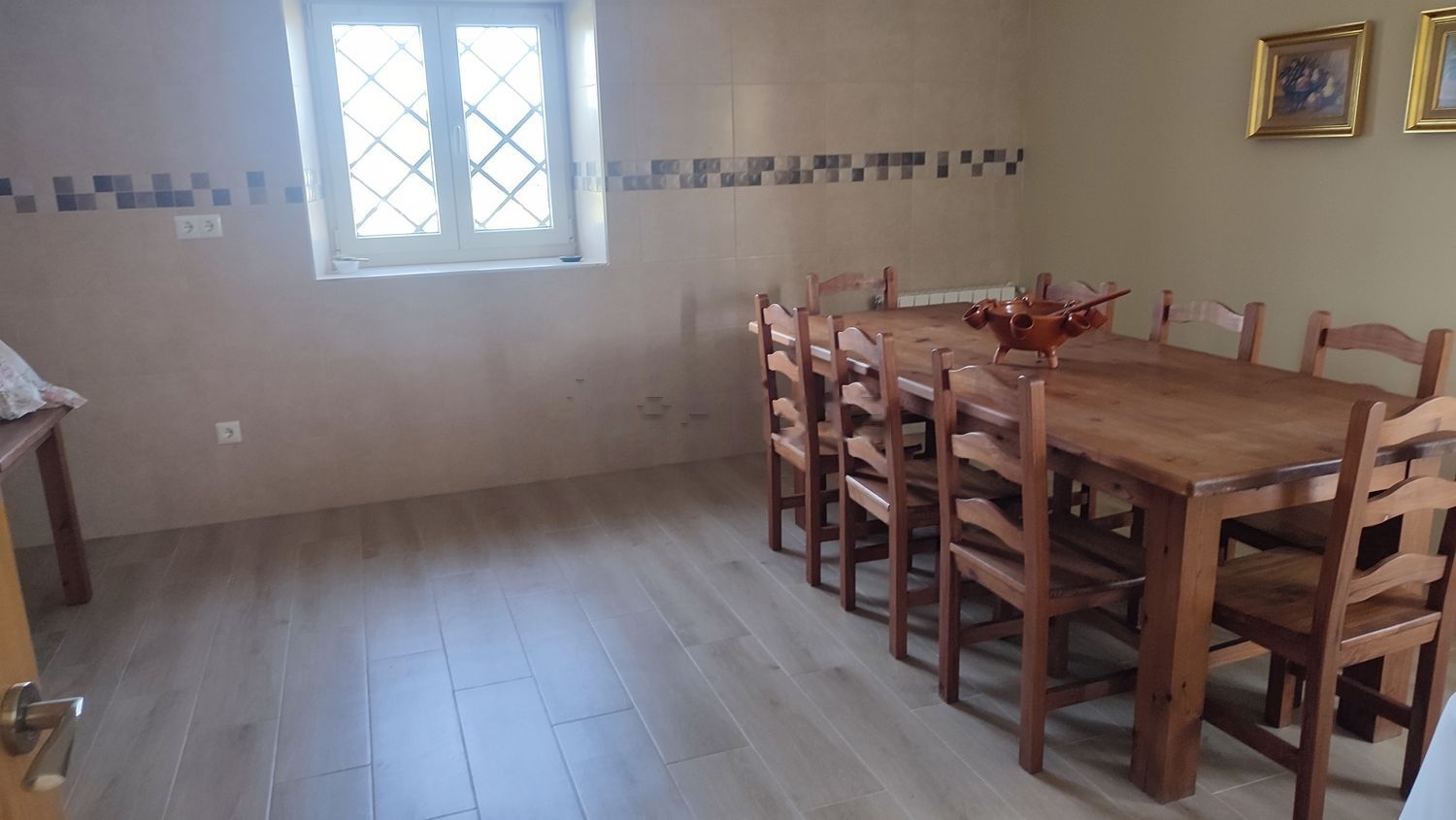 Planta baja- recibidor, amplia cocina comedor, habitación, baño adaptado, acogedora salita con chimenea y cuarto auxiliar.