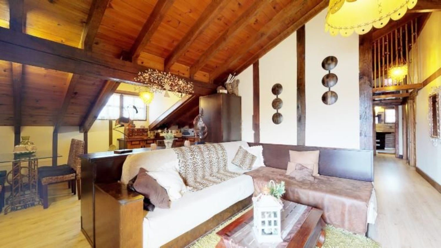La planta superior, o ático, esta actualmente acondicionada como vivienda, se distribuye en 3 dormitorios, dos baños, salón comedor con chimenea y cocina américana. Podrás regentar tu negocio sin necesidad de desplazamientos. Aunque existe la posibilidad de que esta parte sea destinada a alojamiento rural, y sumarse así al resto de la edificación en la que encontramos 5 amplias habitaciones con salon propio y sus correspondientes baños.