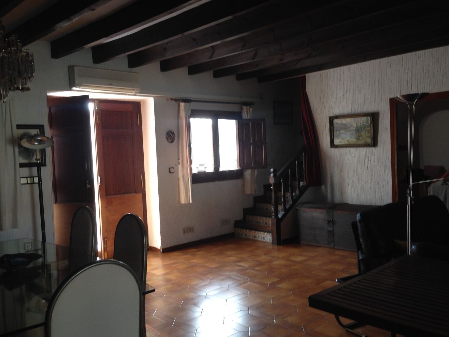precio increÃble! La casa está compuesta por dos viviendas unidas. En la plata baja está el enorme salón con unas cristaleras de pared completa que dan al patio, la cocina reformada hace unos años con comedor que también tiene salida al patio, la otra vivienda anexada con un baño que hace las funciones de trastero, y el patio con un nisperero y la piscina. En la planta superior hay cuatro habitaciones en un pasillo y, en el otro, una habitación grande con baño anexo y otra habitación con un baño en el pasillo. Es una casa preciosa.