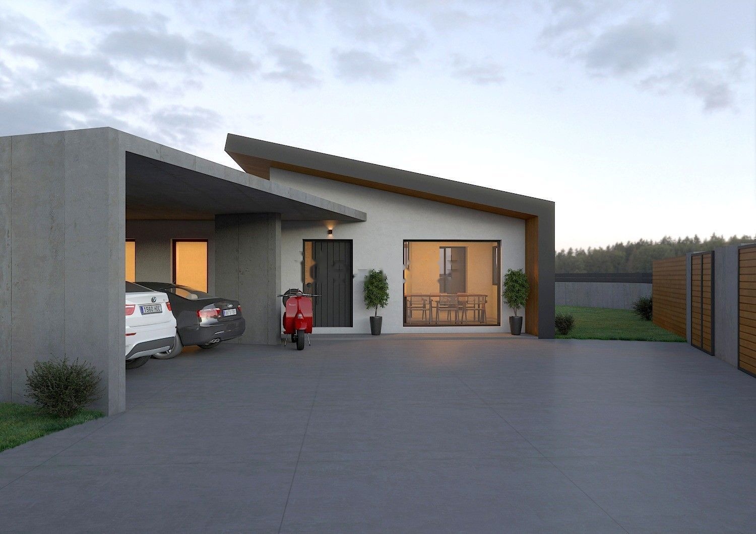 La parcela; llana, soleada y a dos vías publicas, se presenta una vivienda de corte moderno con acabados exteriores en materiales nobles.