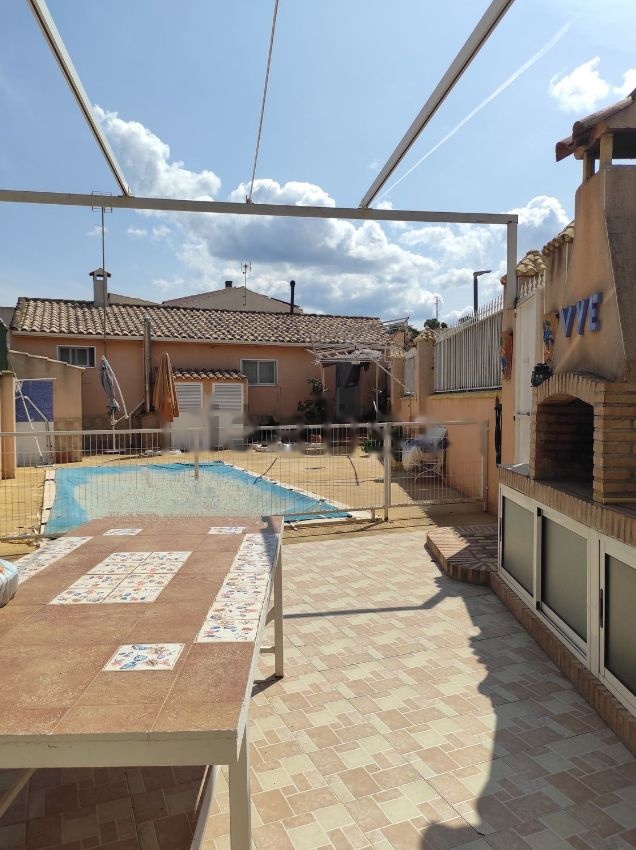 En el patio tenemos una barbacoa, piscina grande con baño para no tener que entrar a la casa, patio muy grande.