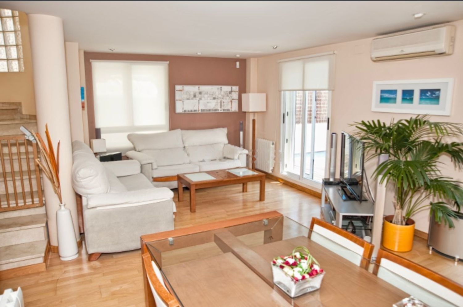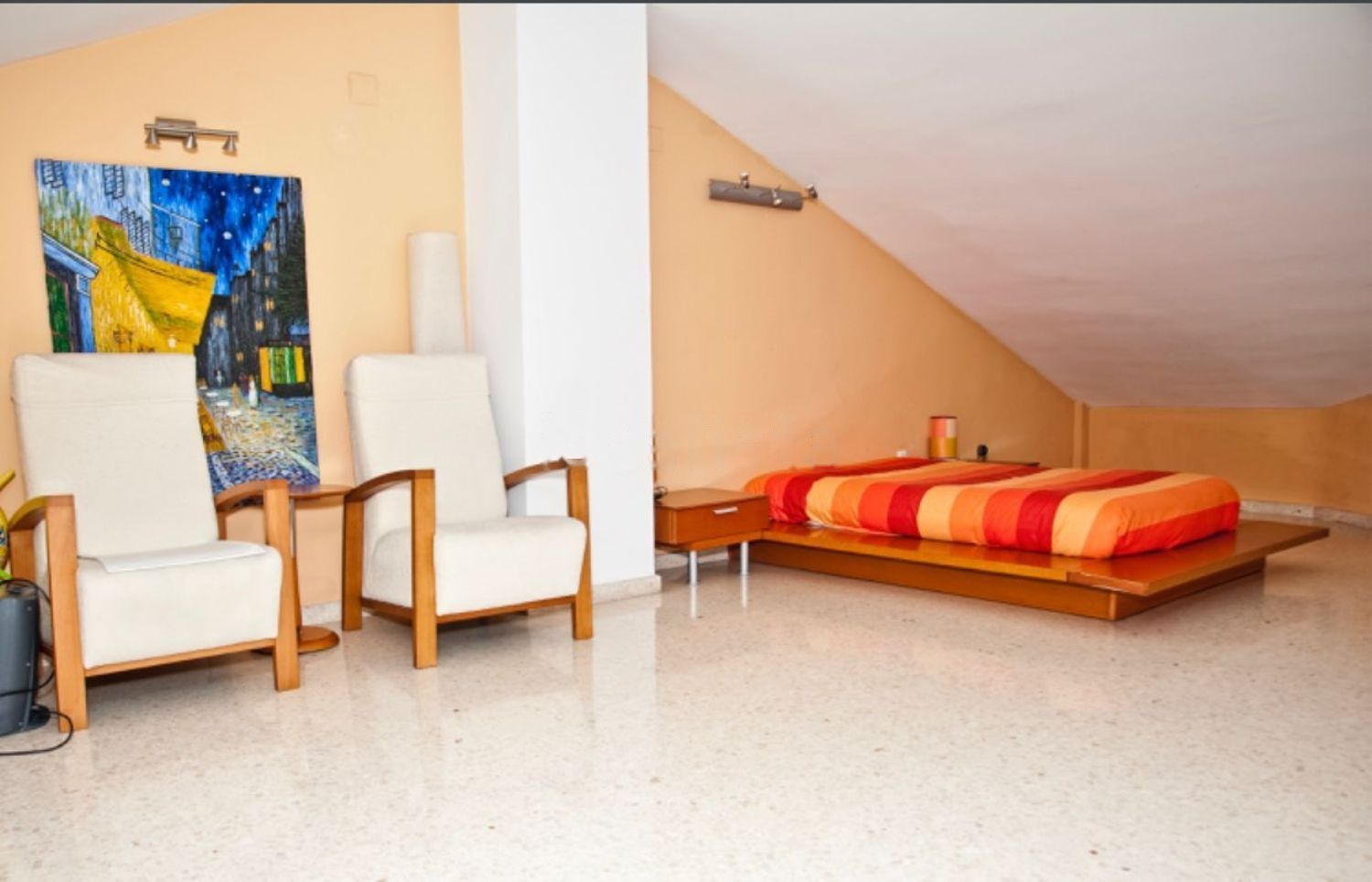 Chalet pareado de x metros cuadrados, situado en El Puig ( Valencia ), zona residencial, en el mismo pueblo. Compuesta de 2 dormitorios, uno matrimonial con aseo muy amplio con ducha y bañera independiente, dos ventanas a la calle y armario ropero. Otro dormitorio de 30 metros cuadrados muy amplio, con disposición de dividir en 2 dormitorios de 15 metros cuadrados cada uno, con dos salidas a amplio balcón, armario empotrado de 6 puertas y doble fondo, ambas habitaciones están insonorizadas. Buhardilla de 50 metros cuadrados actualmente dormitorio, con 2 armarios empotrados. Escalera de acceso a estancias con cristal de pavés con mucha iluminación natural. Planta baja con cocina muy amplia, recibidor, aseo de cortesía, salón de 30 metros cuadrados con 2 salidas a terraza, muy soleado el salón y la terraza de 35 metros cuadrados con piscina, jacuzzi, climatizada. Terraza delantera a calle de 20 metros cuadrados, con iluminación nocturna led de suelo. Aire acondicionado en todas las estancias. Calefacción por radiadores de agua con Gas Natural en todas las estancias. Alarma perímetros exterior y alarma interior. Garaje en planta baja con puertas automáticas con capacidad para un vehículo y una moto, muy cómodo por estar en la misma planta que la vivienda.