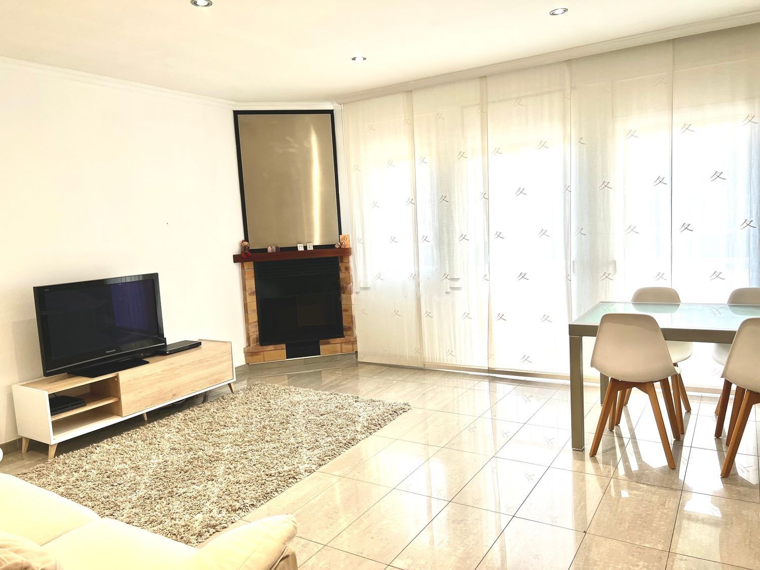 En la primera planta encontramos el comedor de 25m2, con chimenea y aire acondicionado, una cocina totalmente equipada, y un aseo. También un pequeño patio interior totalmente cubierto que da mucha luminosidad a la casa.