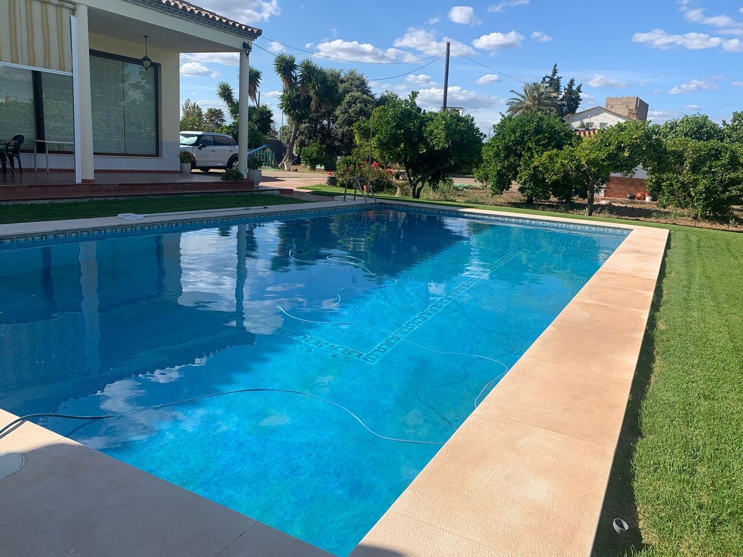 Chalet de 280 metros en perfecto estado. Parcela de 5200 metros con piscina y pozo propio. Situación inmejorable: a la entrada del pueblo, junto a estación de tren y Parque de las Graveras. Primeras calidades, porche cubierto, chimenea.. . Aprobado proyecto de reparcelación y posibilidad de división en 3 parcelas.