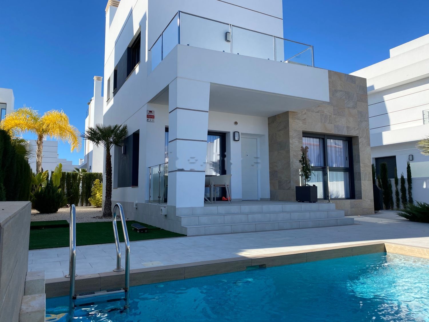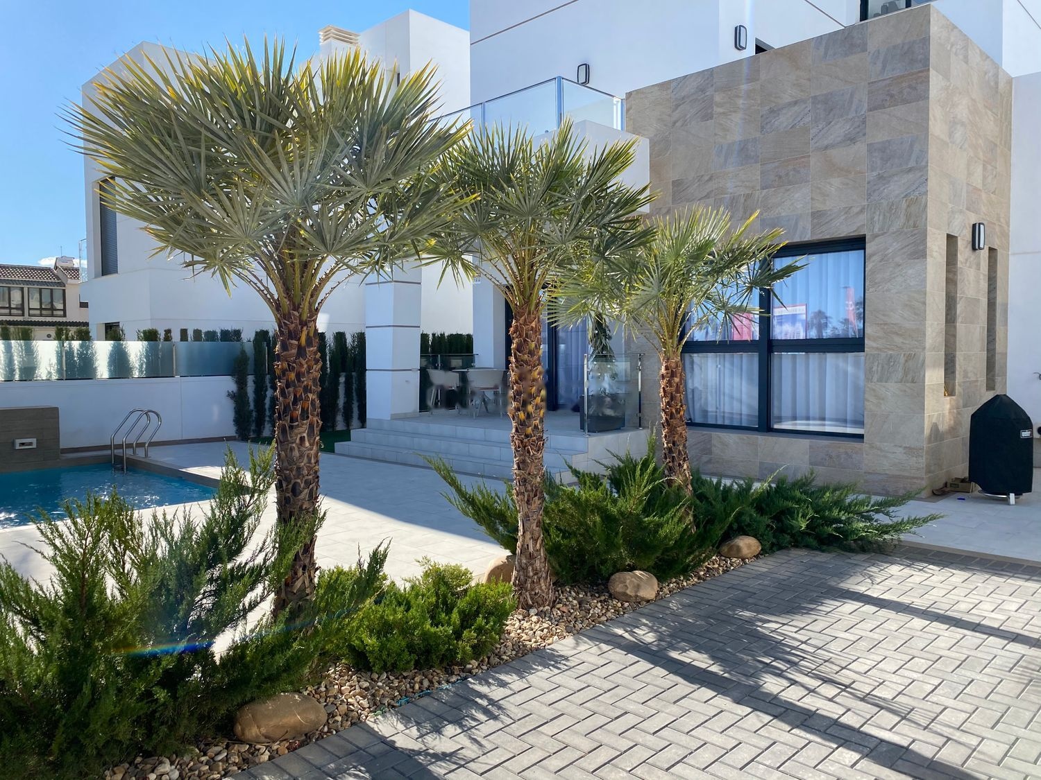 Vendo Villa nueva, en la ciudad de Ciudad Quesada, Donna Pepa pH, con remodelación y mobiliario de autor, decoración, electrodomésticos empotrados, 2 aires acondicionados, todos los electrodomésticos, sistema de casa inteligente, seguridad, alberca con cascada 5 * 3.5 m , azulejos patio, puerta automática.Amplio balcón desde el dormitorio y solarium en la azotea de 38 m2 con vistas a Solinas. Al mar 8 km, cerca de tiendas, supermercados, centro de negocios!