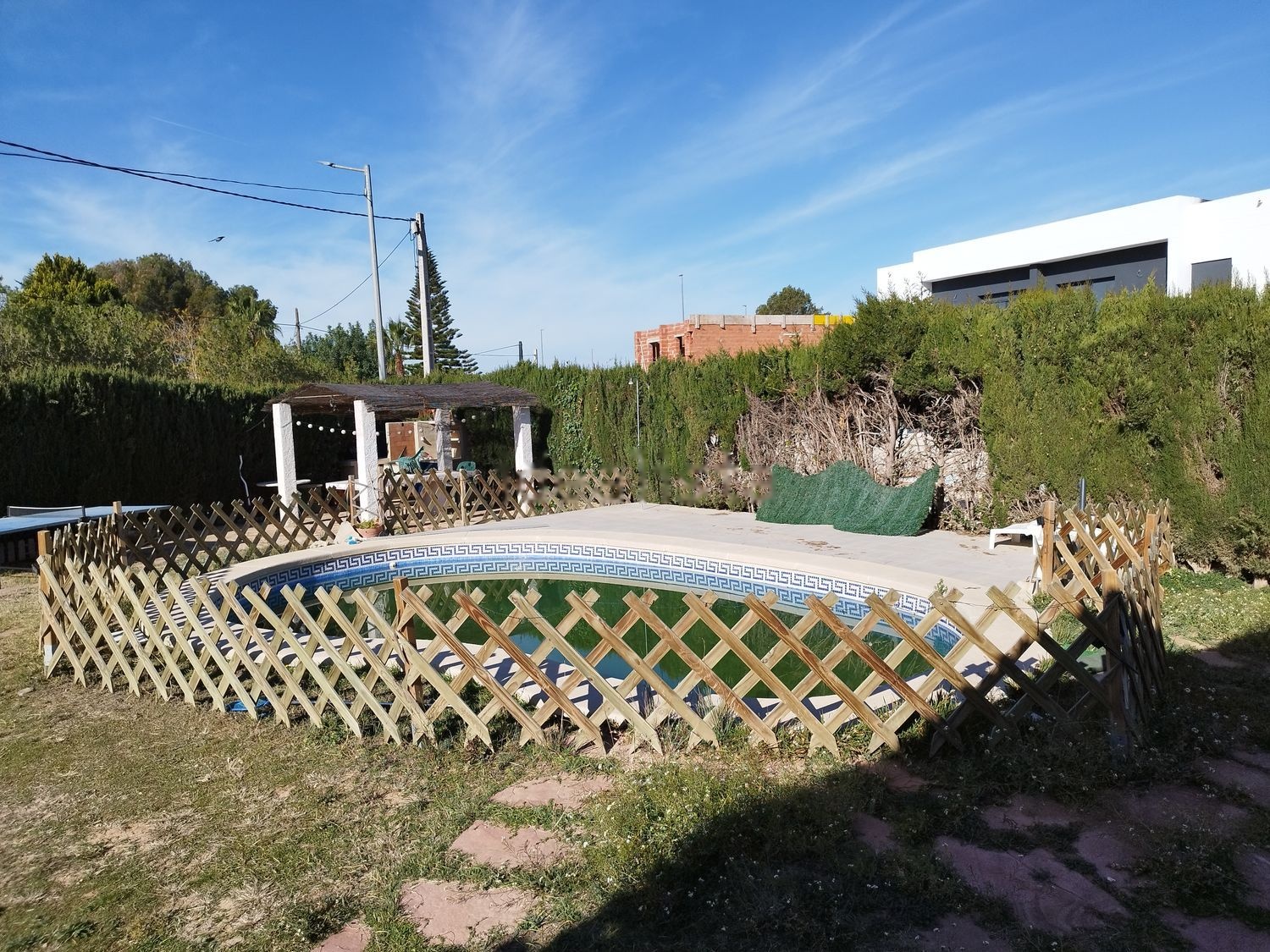 Chalet independiente de una planta, reformado hace 2 años, ubicado en las mejores zonas de San Antonio de Benageber, zona Alta, muy próximo a servicios, comercios, colegios.. . A 3 km de la Eliana, a 12 minutos de Valencia. Es una zona consolidada, muy tranquila, muy soleada, y con vecinos todo el año. El chalet tiene una parcela de 1.033 m2, con un bonito jardín, garage techado para 3/4 coches y trastero 34m2. En vivienda, podemos encontrar un gran comedor con chimenea, una cocina abierta al comedor, un cuarto independiente con despensa y lavadero y 4 habitaciones dobles con dos baños. Todos los espacios de la casa disponen de ventanas exteriores y un gran ventanal corredero hacia el jardín de la piscina. Además cuenta con una terraza de 20 m2, zona de juegos para niños, una piscina 31 m2 y una zona para comer sombreada con barbacoa/paellero/fregadero. Cabe destacar la reciente instalación de placas solares. No dude en ponerse en contacto con nosotros para realizar su visita.