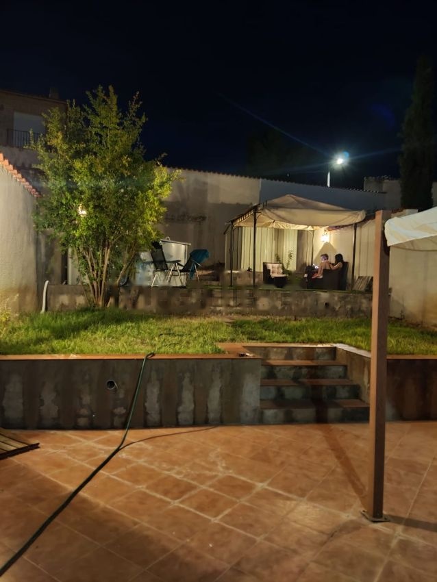 Se vende casa de particular a particular. 3 años de antigüedad nuevo se queda con cocina amueblada, mosquiteras, pergola, caseta, garaje motorizado, riego instalado, patio de 157 m con 35 metros solados y el resto en tres bancadas muy bonito con arboles plantados y cesped natural, zona hormigonada preparada para piscina fija o desmontable, radiadores instalados de calor azul, termo de 75 litros para el agua, todo nuevo en muy buen estado solo se ha usado algunos fines de semana, en el mismo centro del pueblo, urge venta, gracias.distribución:jardín de 157 m2.