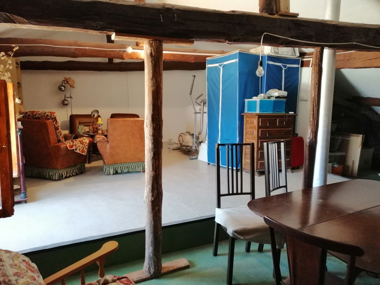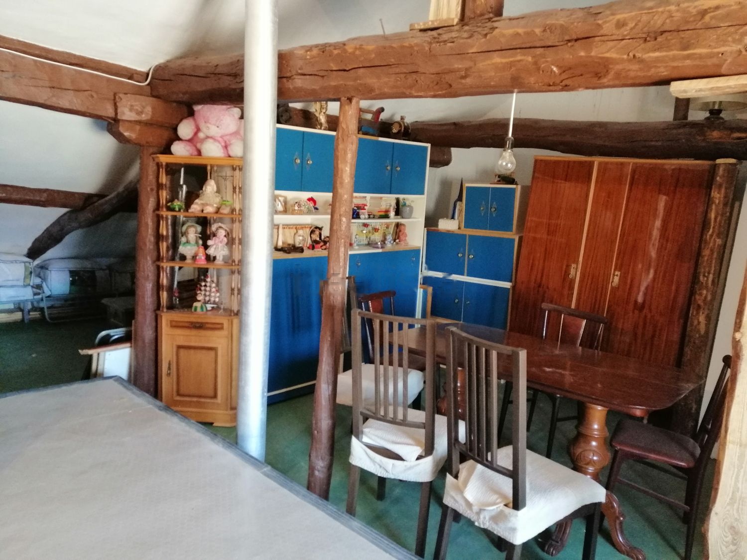 La casa cuenta con dos plantas, en la inferior tiene 4 habitaciones, 1 baño y 1 cocina completas, 1 patio, 1 cuarto trastero y bodega y la planta superior es diafana. El estado general es bueno, solo requiere pequeños arreglos. Tiene la opcion de habilitar una chimena que ahora esta tapada.