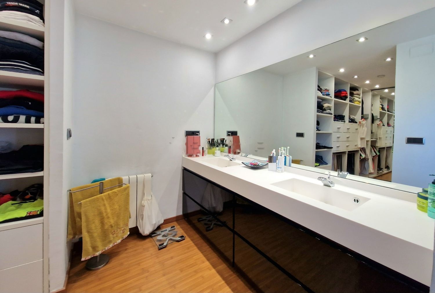 Toda la vivienda tiene calefacción por Gas, con termostato independiente en cada planta, aire acondicionado en la planta del salón comedor, habitación suite y buhardilla. Persianas motorizadas y centralizadas. Suelo de parquet de Bambú y altos acabados. Descalcificador y osmosis. Armarios empotrados y carpintería blanca lacada.