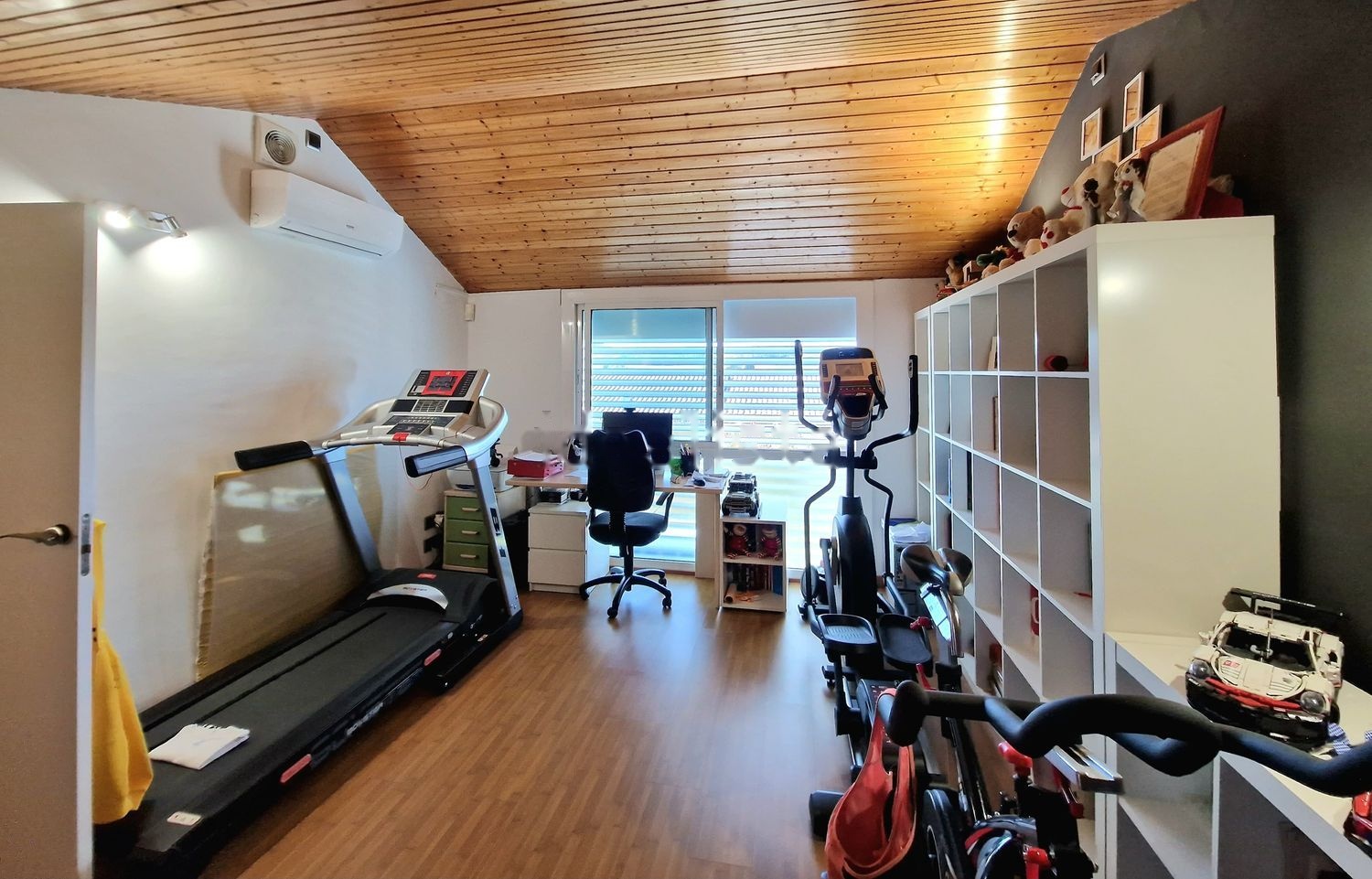 En el último piso encontramos una amplia buhardilla donde puede hacer las funciones de Estudio o de gimnasio, con armario trastero bajo.