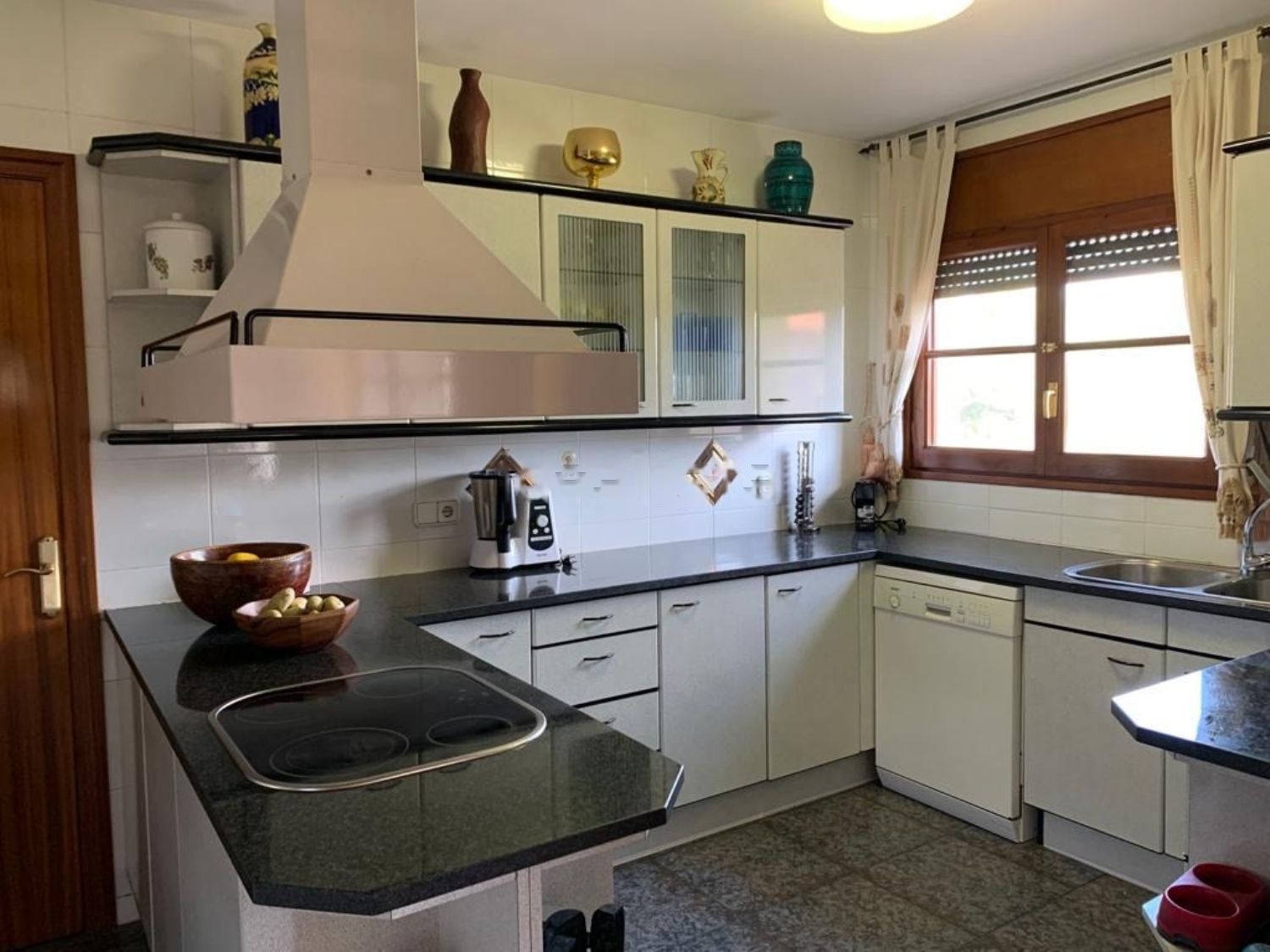 En esta misma planta baja bordeando la casa hay dos garajes más que se utilizan para coches y almacén, estos dan paso a una cocina con un baño en la misma planta.