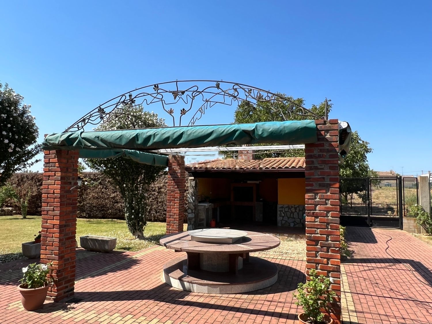 El jardín cuenta con zona de barbacoa cubierta y cenador.