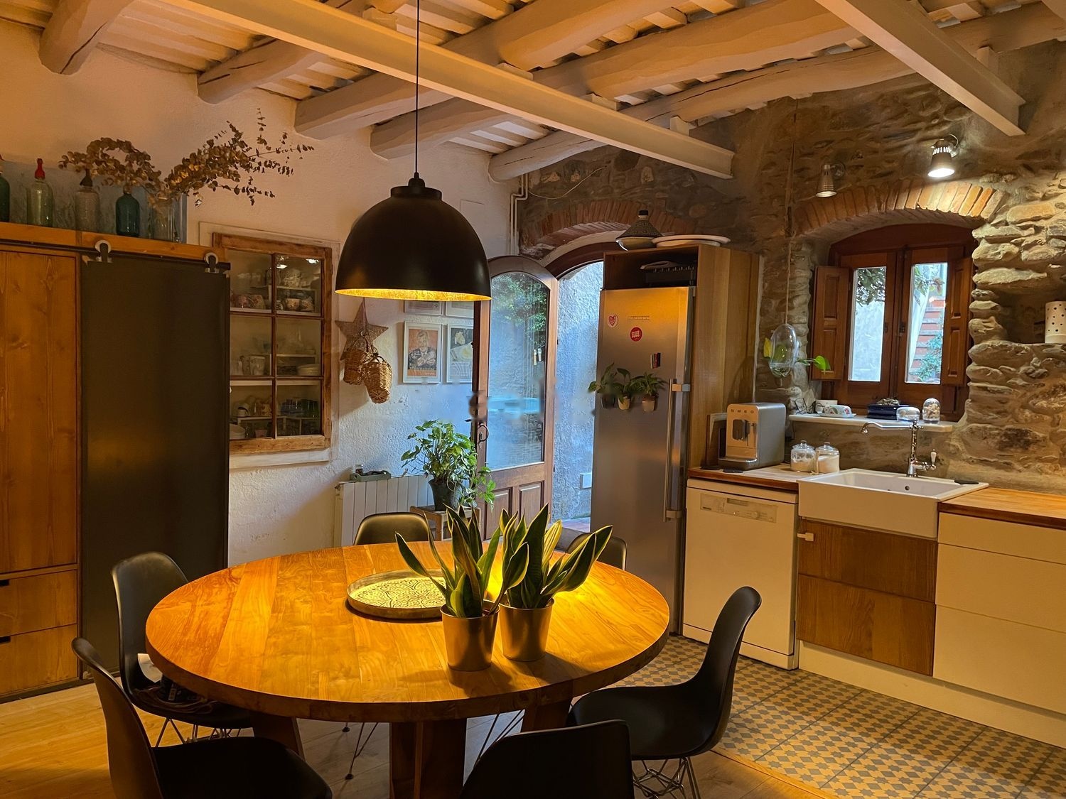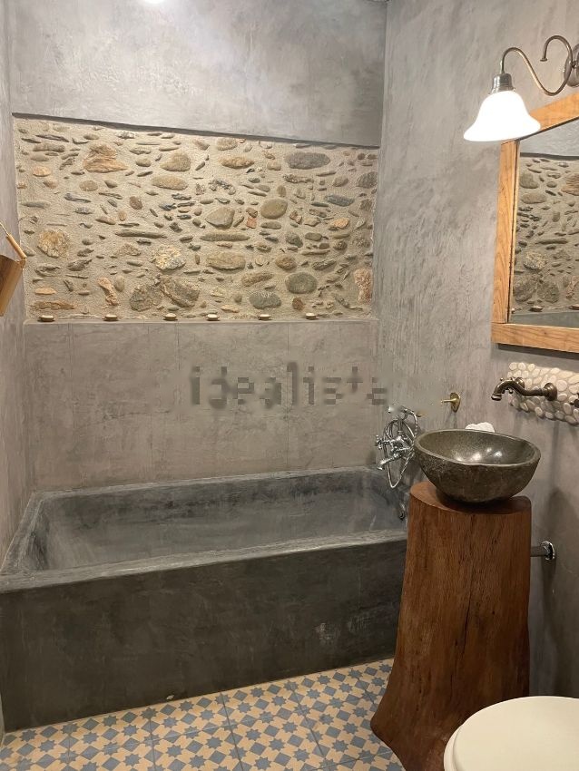Suelo de parquet en la primera planta y en el resto de pisos suelos originales de toba. Tejado de bigas de castaño y aislado de reciente construcción. Habitaciones: 2 con doble nivel 15m2 y altillo para cama doble, 1 habitación de unos 18m2 + vestidor, 2 habitaciones de 20 m2, cocina-comedor, con estufa de hierro, de unos 35m2, sala de estar con estufa de hierro de unos 20 m2, 2 baños completos, uno con bañera y otro con ducha. 1 habiatción de plancha, lavadora y trastero de 20m2. Patio de unos 50 m2 con piscina de agua salada.