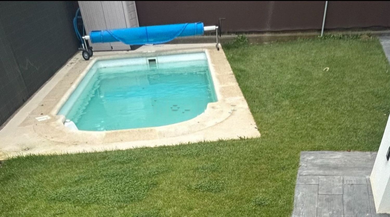 Vivienda NUEVA con instalación fotovoltaica en cubierta de 10kW, con jardín y piscina. Planta baja: entrada, cocina-salón, baño, 2 habitaciones, cuarto de instalaciones y cochera.